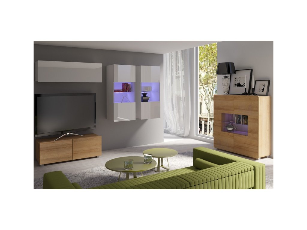 Dolní segment je univerzální - TV stolek možno postavit či zavěsit.