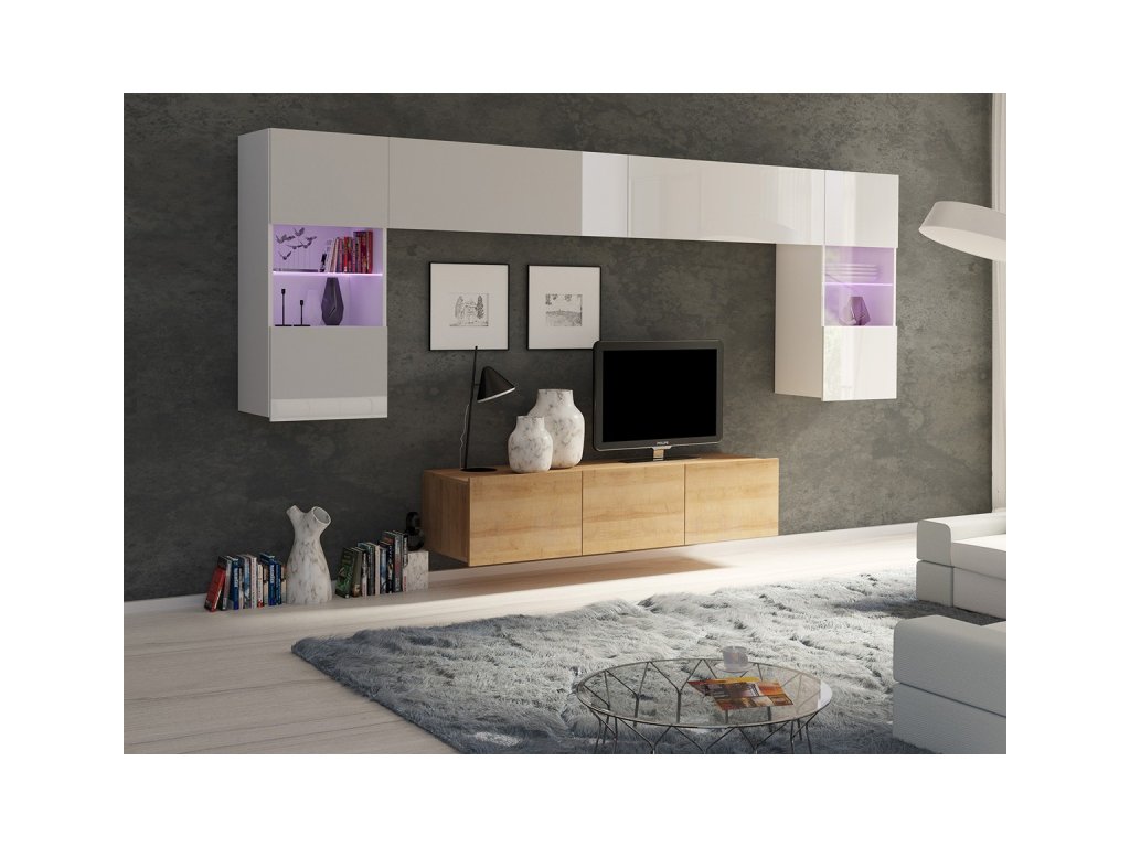 Dolní segment je univerzální - TV stolek možno postavit či zavěsit.