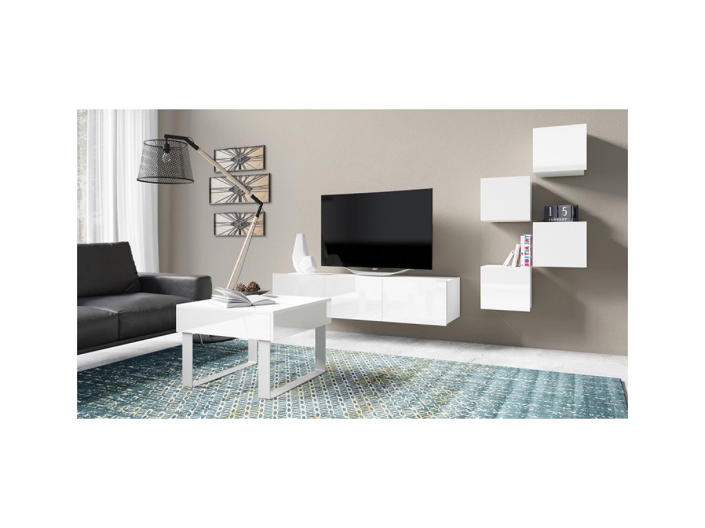 Dolní segment je univerzální - TV stolek možno postavit či zavěsit.