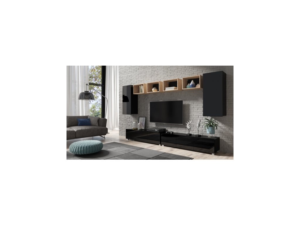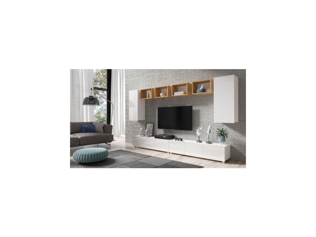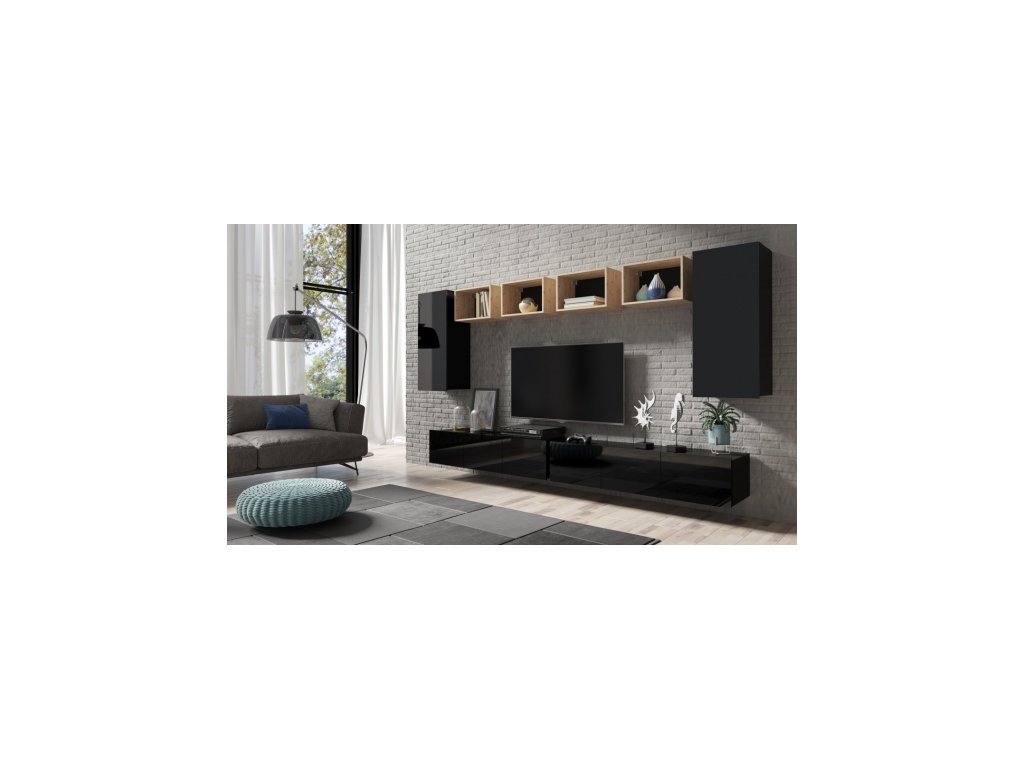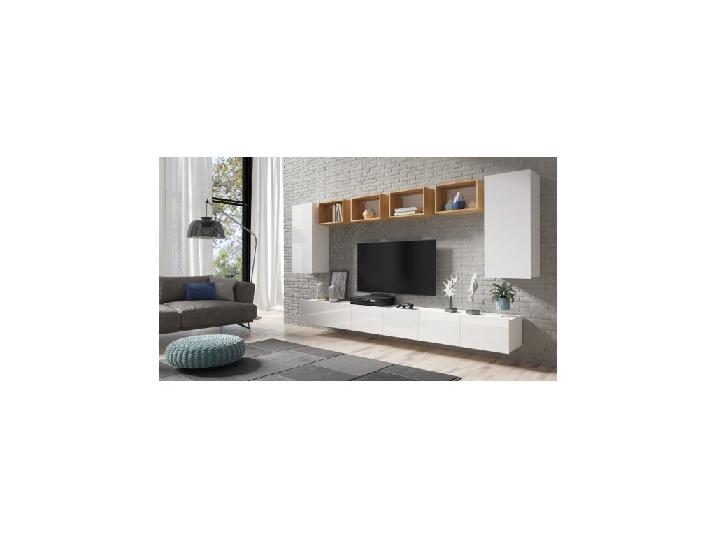 Dolní segment je univerzální - TV stolky lze postavit či zavěsit.
