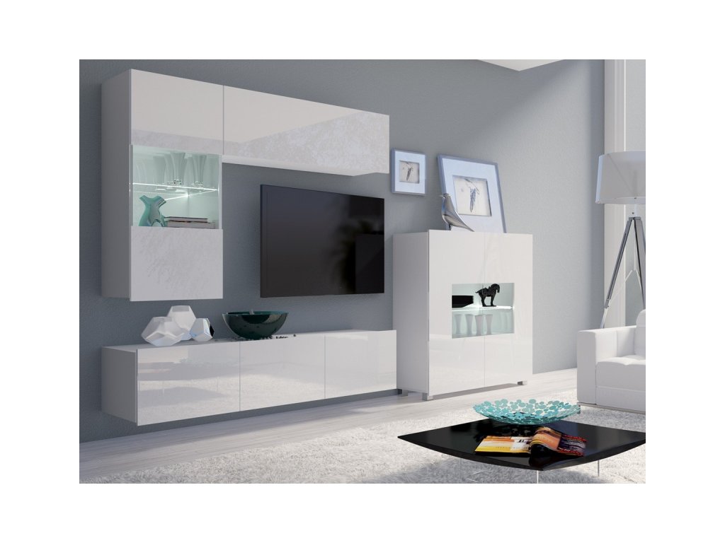 Dolní segment je univerzální - TV stolek možno postavit či zavěsit.