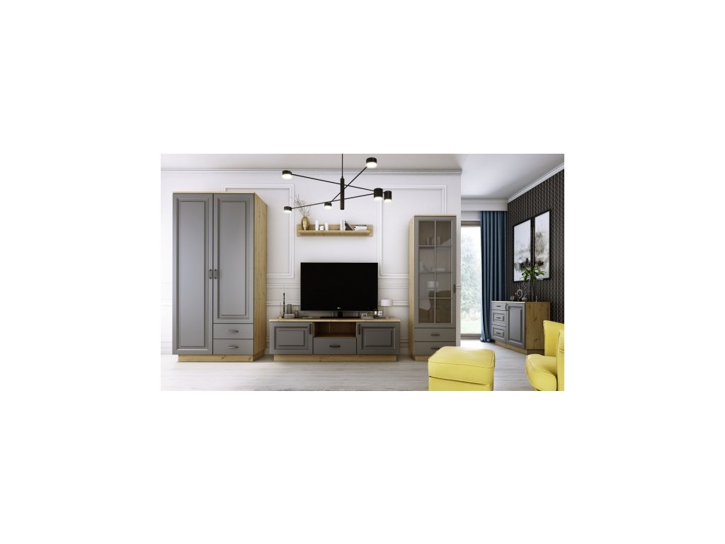 Tento stylový nábytek dodá Vašemu interiéru zajímavý vzhled a zaslouženou pozornost. Přední části, které jsou v odstínu grafit mat s prolisy, jsou atraktivním prvkem tohoto nábytku. Korpus má odstín dub Artisan, hrany jsou zakončeny lištou ABS a úchytky tohoto sektoru jsou kovové.