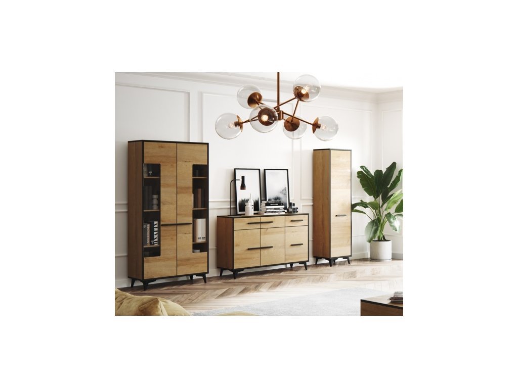 Dnes moderní nemusí znamenat minimalistický. Současné řešení poskytne pohodlí a harmonii. Touto kolekcí dosáhnete originálního efektu, který okouzlí každého hosta. Nábytek je vyroben z kvalitní laminované desky. Součástí celé kolekce jsou kuličkové pojezdy, rukojeti a 12 cm vysoké stylové nohy z plastu. Vitríny obsahují tvrzené bezbarvé sklo a lze přikoupit LED osvětlení.
