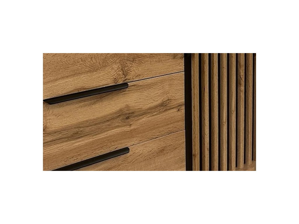 Kolekce Kris je odpovědí na potřeby těch, kteří oceňují moderní trendy, vysokou estetiku, ale i funkčnost. Nábytek. který je určený pro uspořádání obývacího pokoje nebo ložnice nabízí jedinečná řešení, které kombinují minimalistický design s teplem přírodního dřeva. Předností jsou lamely v kombinaci elegantní matné černé barvy, které dodají nábytku luxusní vzhled a kouzlo. Tento sektor je velmi praktický a díky jeho provedení se velmi dobře sladí s ostatními bytovými doplňky.