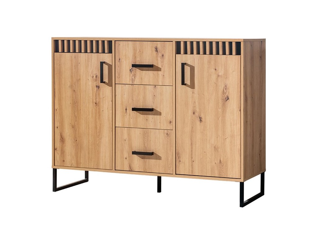 Moderní, zajímavý a vkusný nábytek, který zaujme na první pohled svým provedením. Atraktivní lamelové lišty a kovové nohy dodají nábytku nevšední vzhled a eleganci. Díky kombinaci různých dílů si můžete sestavit pokoj přímo na míru a přesně podle Vašich představ a přání. Jednoduché a velmi příjemné provedení se krásně sladí s ostatními bytovými doplňky a Vy se tak budete v interiéru cítit velmi dobře.