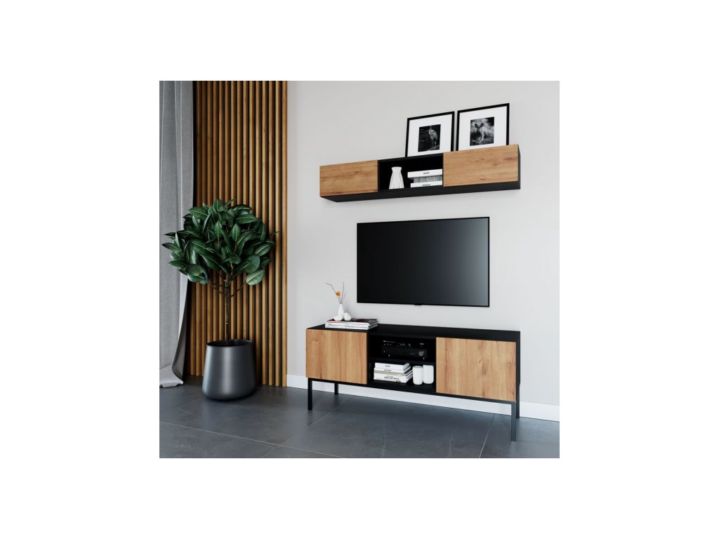 Obývací stěna Lanzzi sestava 1, černá + dub artisan