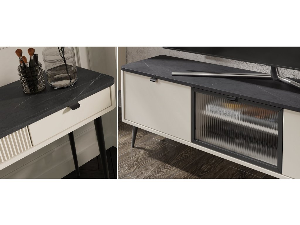 Moderní provedení sektoru Marly, který vyniká především drážkovanými prvky a vysokými nožkami je určen pro ty , kteří oceňují světlo, eleganci a funkčnost. Každý kus nábytku je navržen s důrazem na detail a celkově vytváří ucelený a luxusní interiér. Díky výběru dílů, sestavíte Váš pokoj přesně podle představ a potřeb. Velmi dobře se kombinuje s ostatními bytovými doplňky, které dodají místnosti útulný a příjemný vzhled a Vy se tak budete cítit bezstarostně a bezpečně.