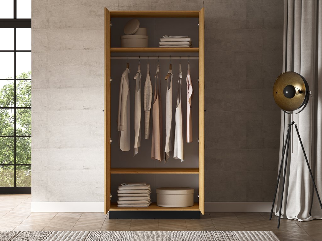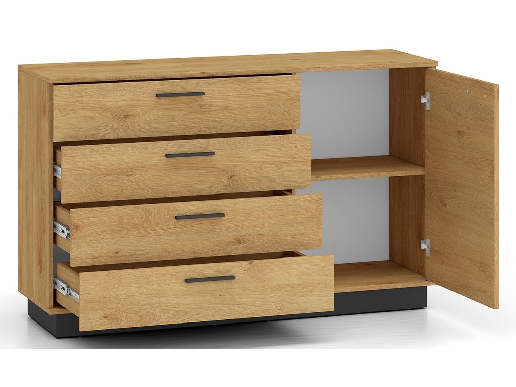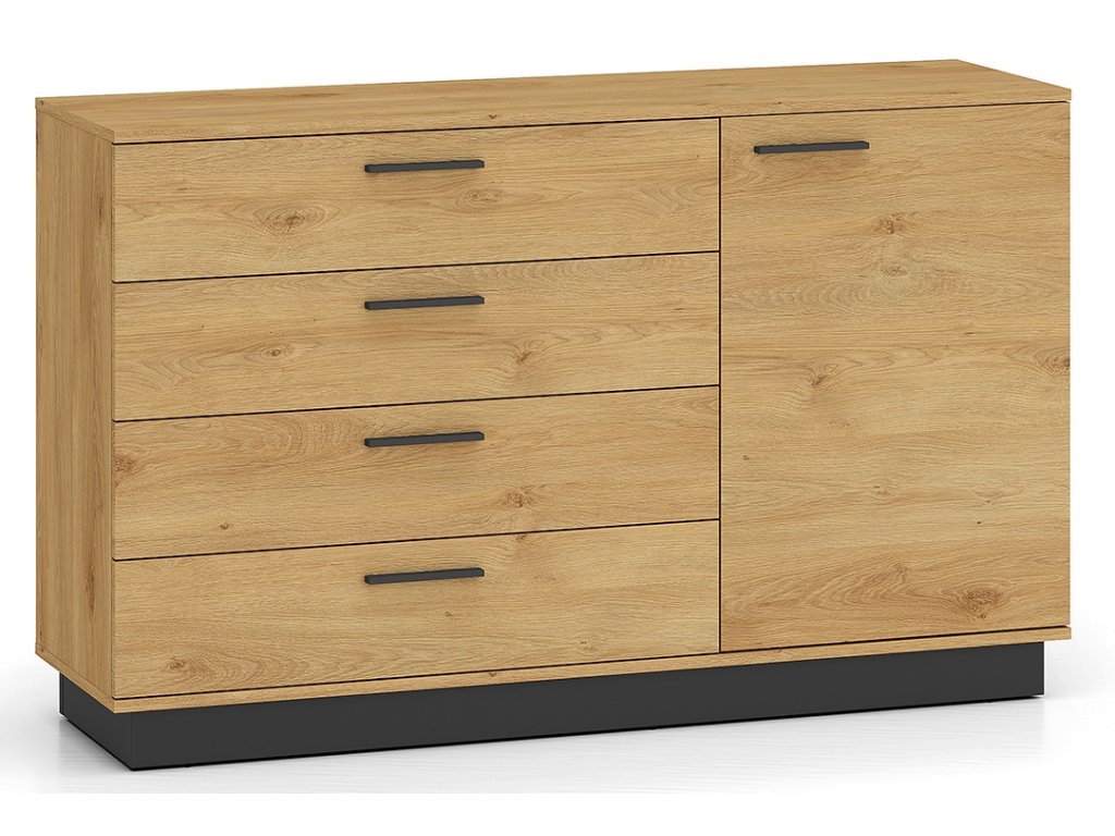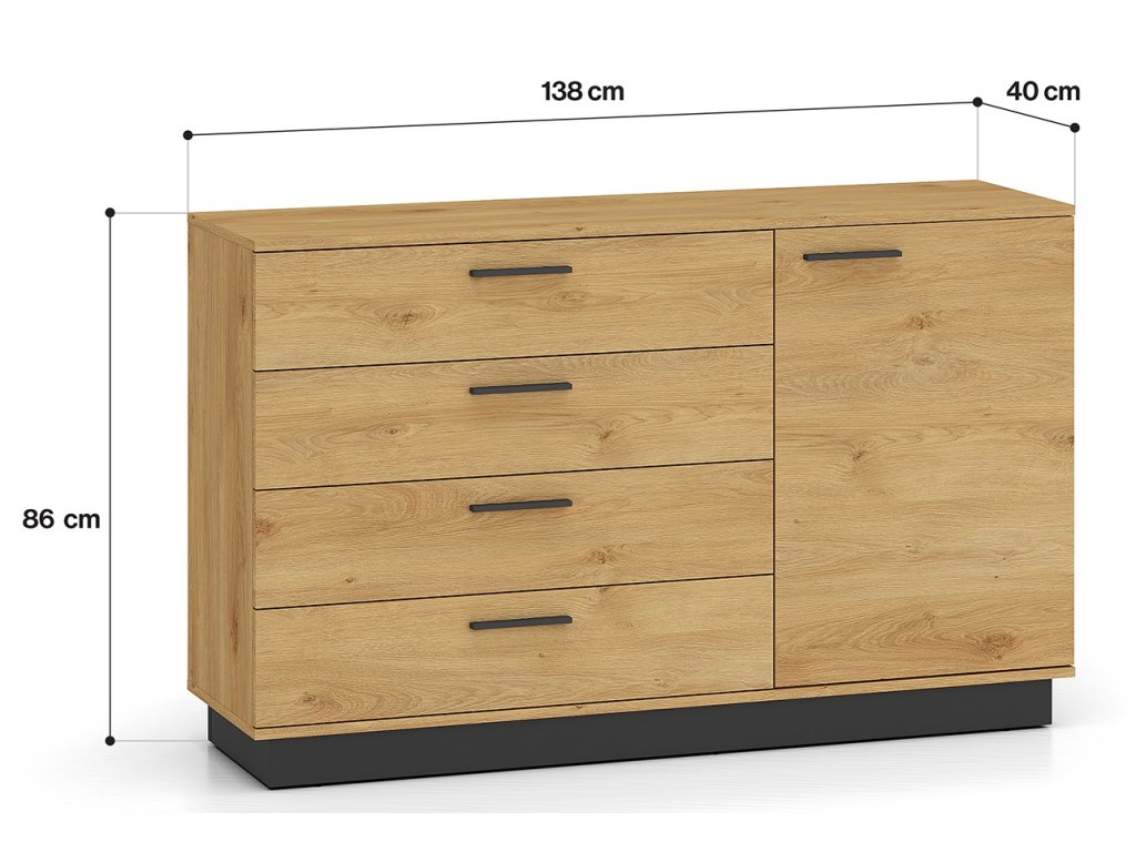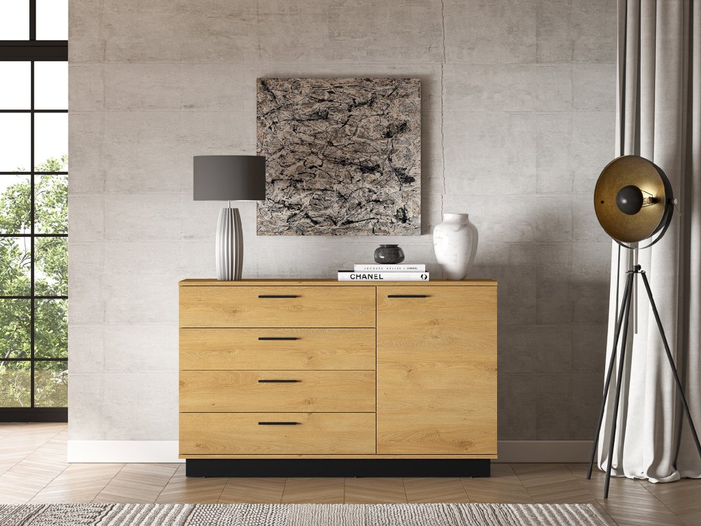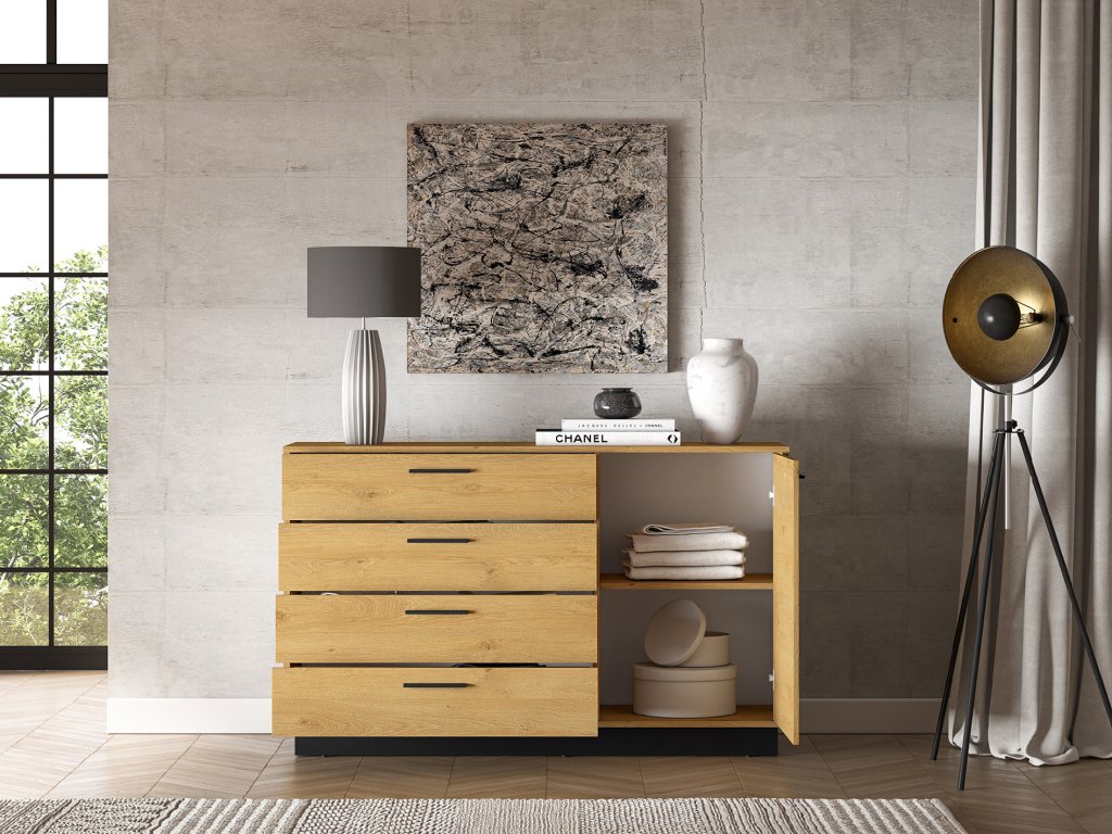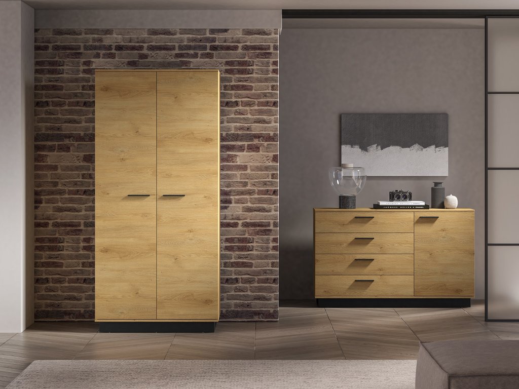 Nábytek z kolekce Modesto je dokonalou kombinací jednoduchosti, elegance a funkčnosti. Výrazný teplý odstín dubu v kombinaci s černými doplňky vytváří velmi moderní interiér. Díky jednotlivým dílům vytvoříte pokoj přesně na míru a podle Vašich přání. Krásně se sladí s ostatními bytovými doplňky a Vy si tak vytvoříte příjemný a klidný domov pro každodenní odpočinek.