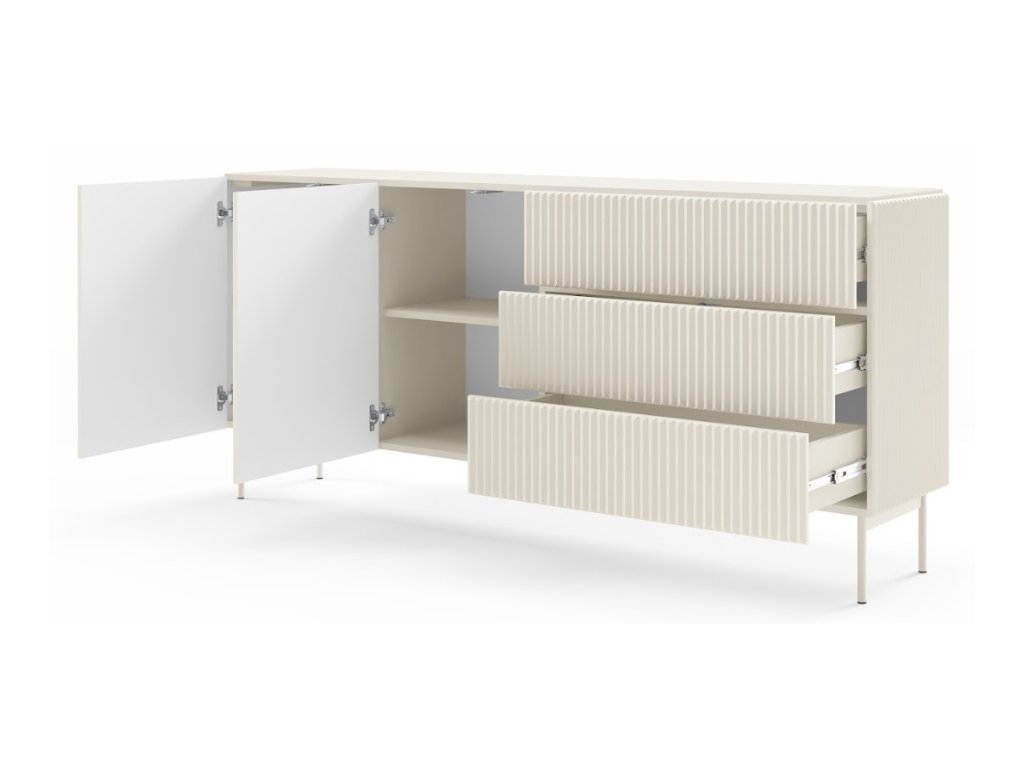Moderní sektor Muti zaujme na první pohled svým zpracováním, designem a funkčností. Předností této řady je velmi moderní drážkování a praktické vysoké nohy, které Vám usnadní práci při úklidu. Nábytek je vyroben hlavně pro ty, kteří mají rádi jednoduchý a elegantní styl bydlení. Sektor je praktický a krásně se sladí s ostatními bytovými doplňky.