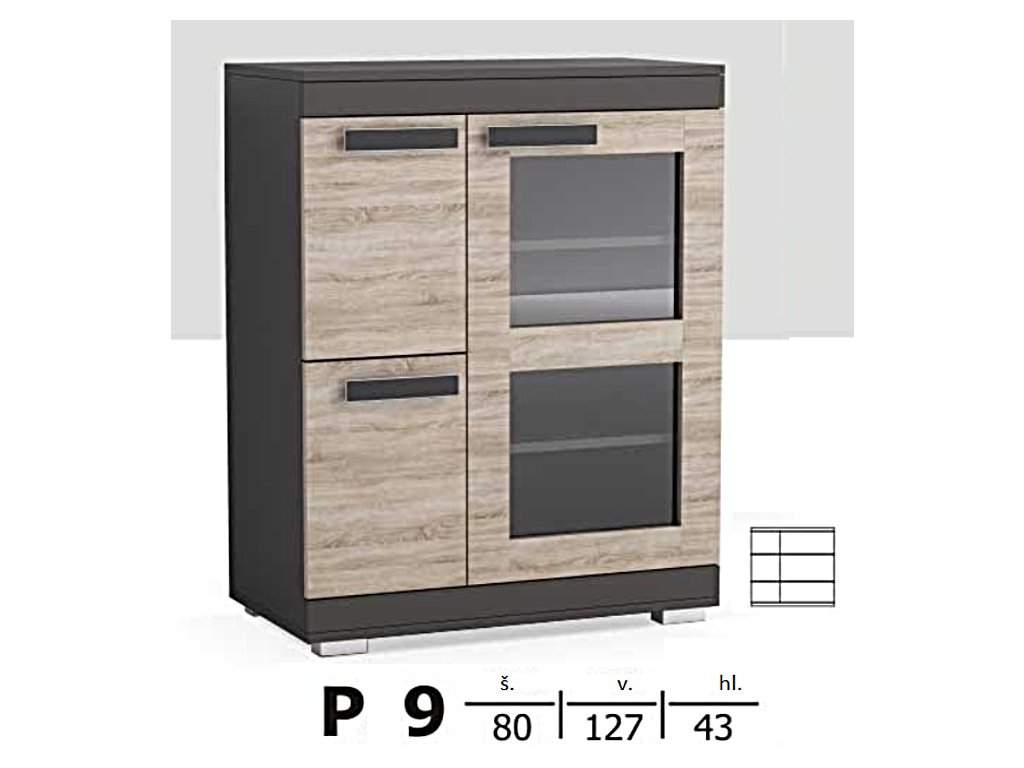 Moderní, univerzální nábytkový systém, kde si můžete vybírat z velkého množství jednotlivých dílů. Kolekce je vyrobena z dřevotřískové laminované desky o tloušťce 18 mm. Ze sektoru můžete sestavit obývací stěnu, studentský pokoj, jídelnu, pracovnu nebo předsíňovou stěnu. Lze zvolit jiné barevné provedení korpusu, dvířek a lišty. Nábytek Petr "P" zajistí pohodlný i praktický interiér a útulné a bezpečné prostředí ve Vašem domově.