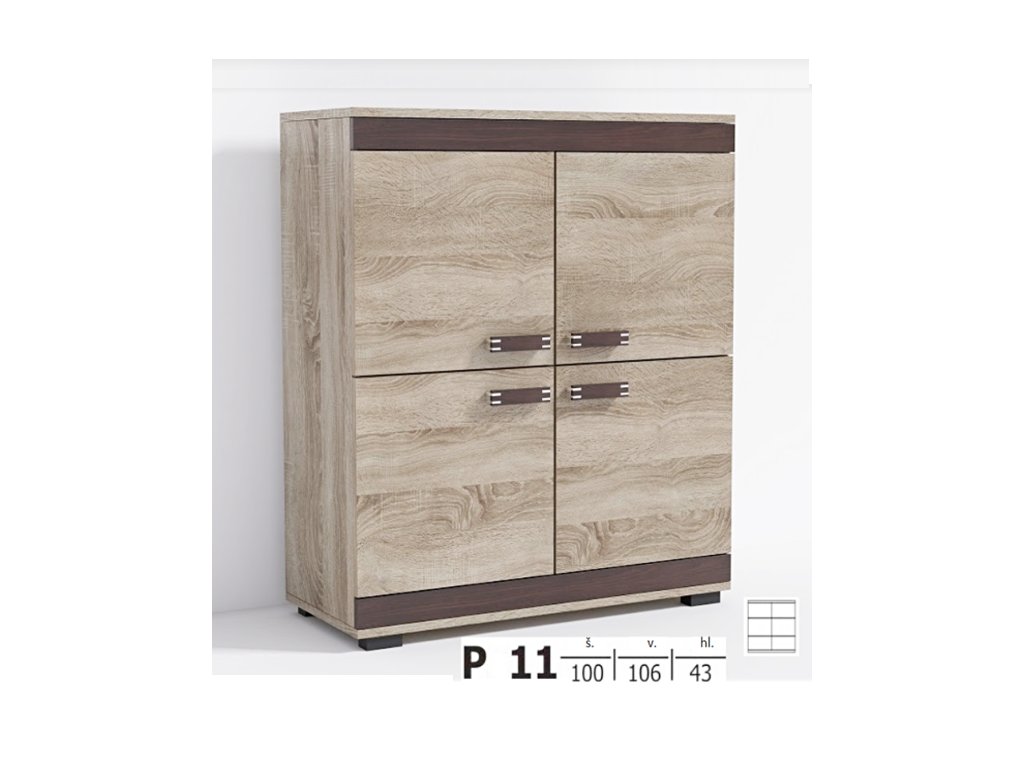 Moderní, univerzální nábytkový systém, kde si můžete vybírat z velkého množství jednotlivých dílů. Kolekce je vyrobena z dřevotřískové laminované desky o tloušťce 18 mm. Ze sektoru můžete sestavit obývací stěnu, studentský pokoj, jídelnu, pracovnu nebo předsíňovou stěnu. Lze zvolit jiné barevné provedení korpusu, dvířek a lišty. Nábytek Petr "P" zajistí pohodlný i praktický interiér a útulné a bezpečné prostředí ve Vašem domově.