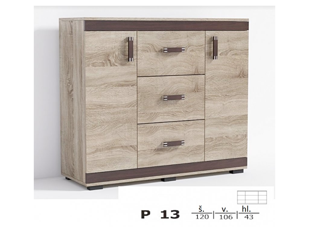 Moderní, univerzální nábytkový systém, kde si můžete vybírat z velkého množství jednotlivých dílů. Kolekce je vyrobena z dřevotřískové laminované desky o tloušťce 18 mm. Ze sektoru můžete sestavit obývací stěnu, studentský pokoj, jídelnu, pracovnu nebo předsíňovou stěnu. Lze zvolit jiné barevné provedení korpusu, dvířek a lišty. Nábytek Petr "P" zajistí pohodlný i praktický interiér a útulné a bezpečné prostředí ve Vašem domově.