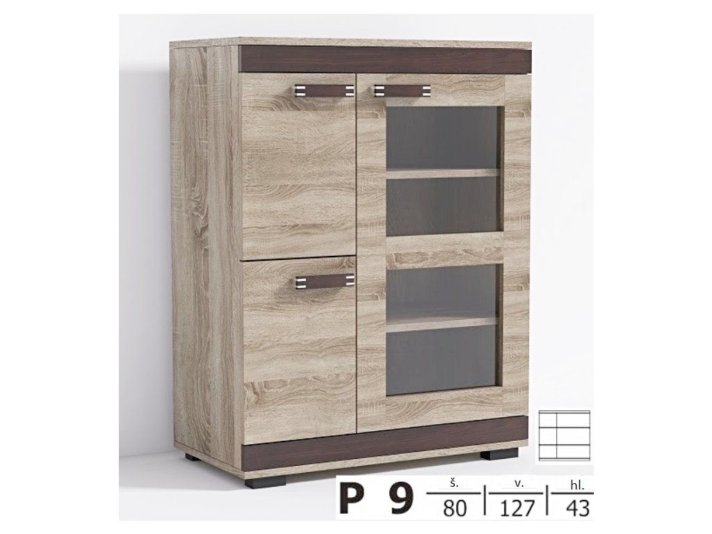 Moderní, univerzální nábytkový systém, kde si můžete vybírat z velkého množství jednotlivých dílů. Kolekce je vyrobena z dřevotřískové laminované desky o tloušťce 18 mm. Ze sektoru můžete sestavit obývací stěnu, studentský pokoj, jídelnu, pracovnu nebo předsíňovou stěnu. Lze zvolit jiné barevné provedení korpusu, dvířek a lišty. Nábytek Petr "P" zajistí pohodlný i praktický interiér a útulné a bezpečné prostředí ve Vašem domově.