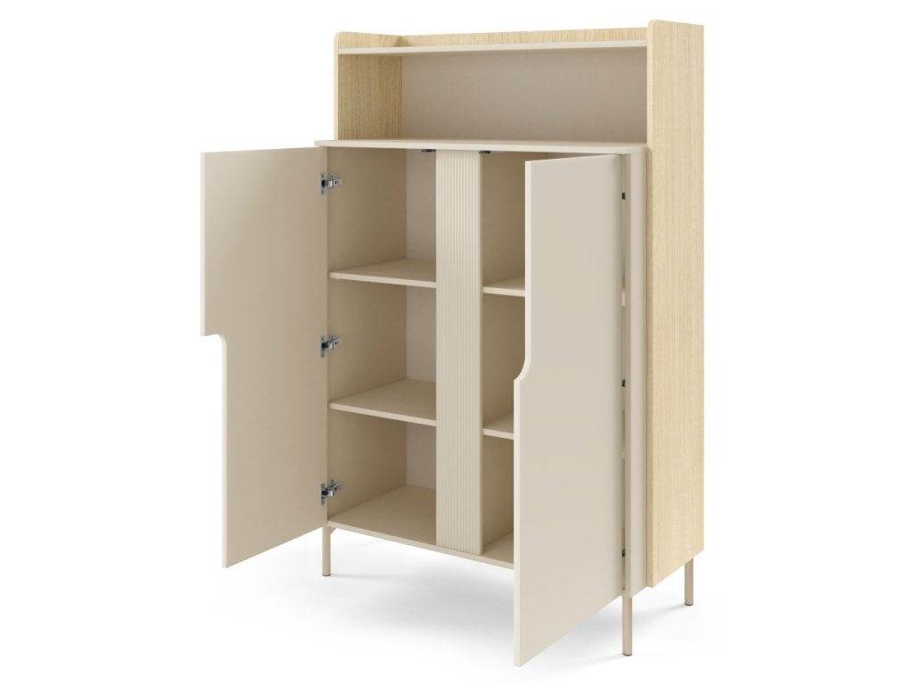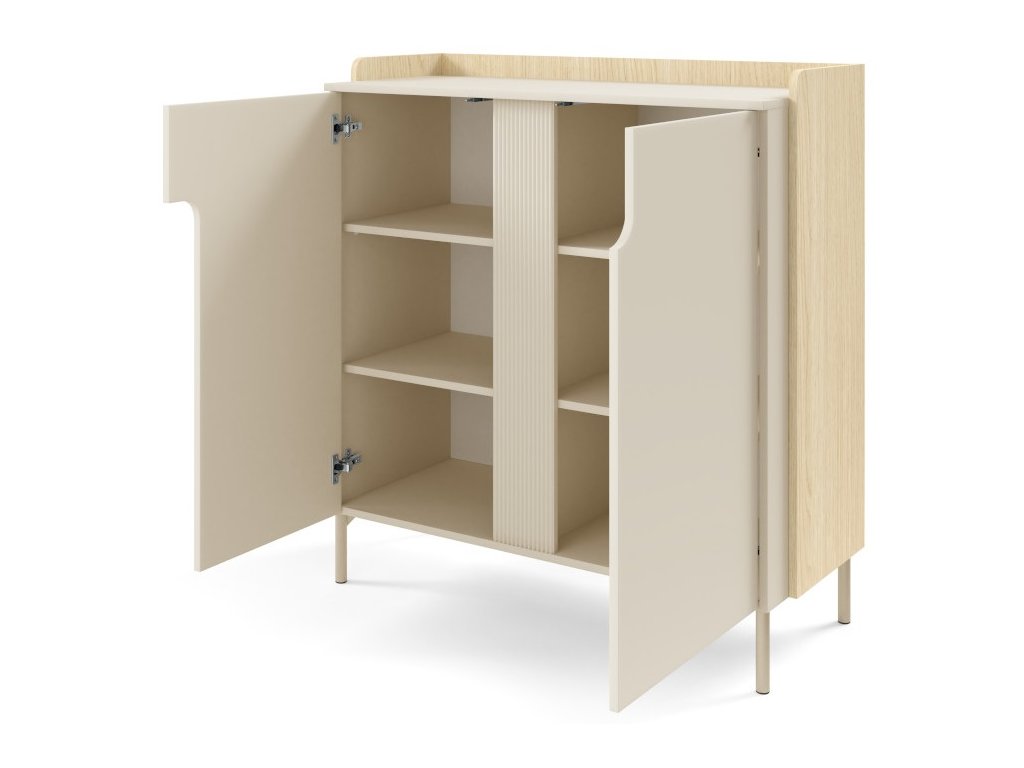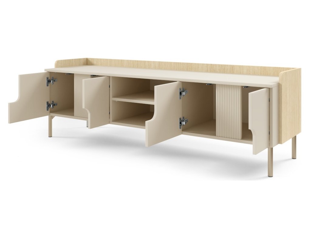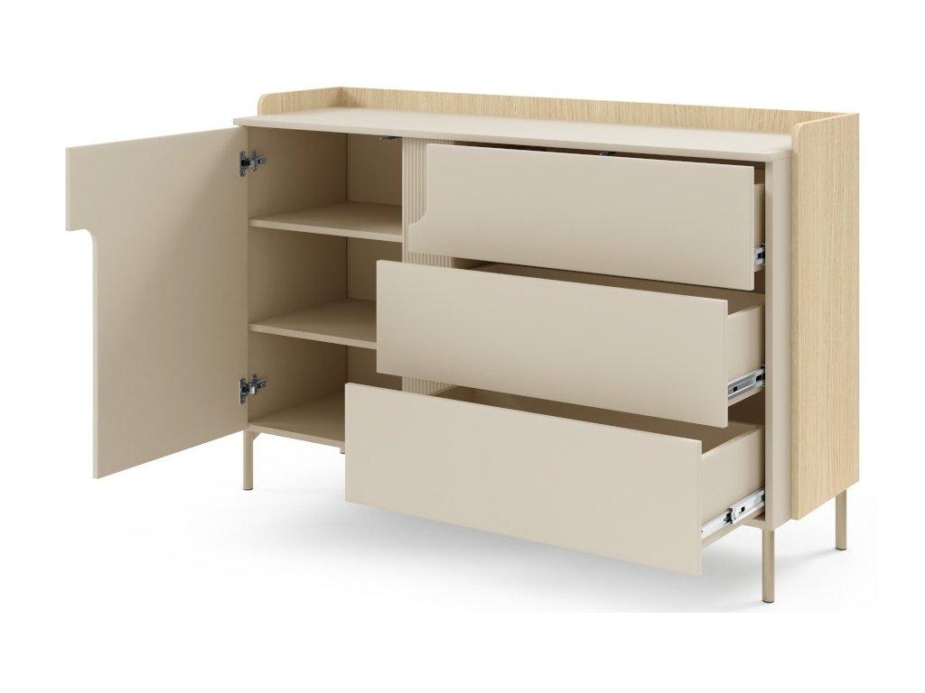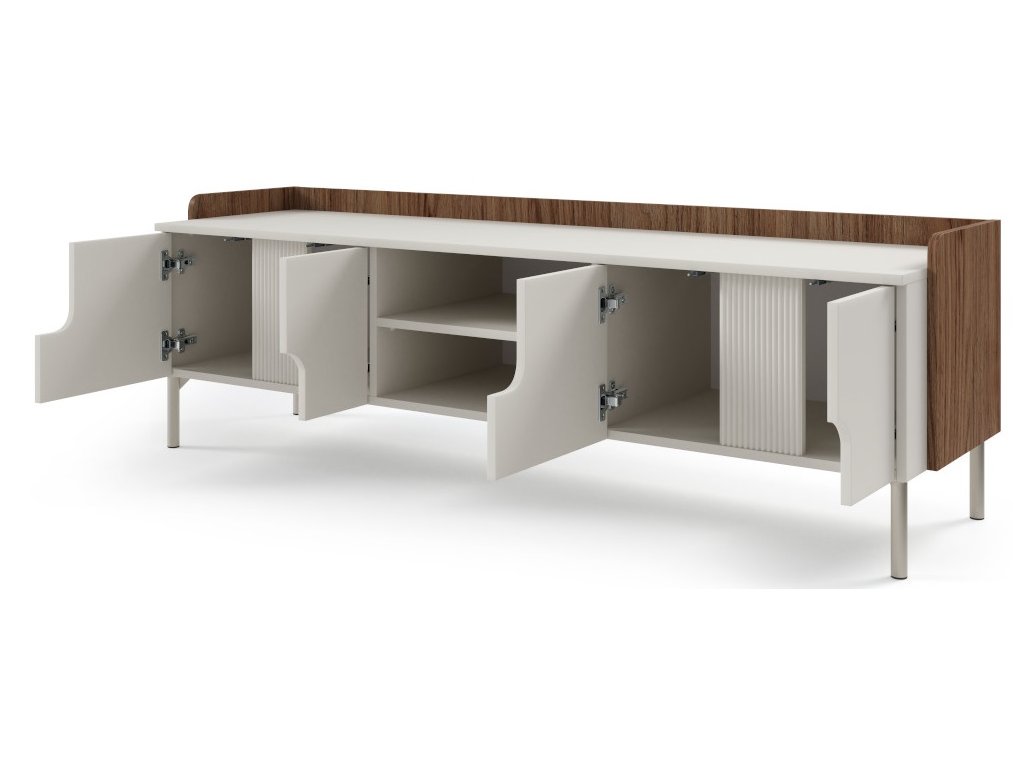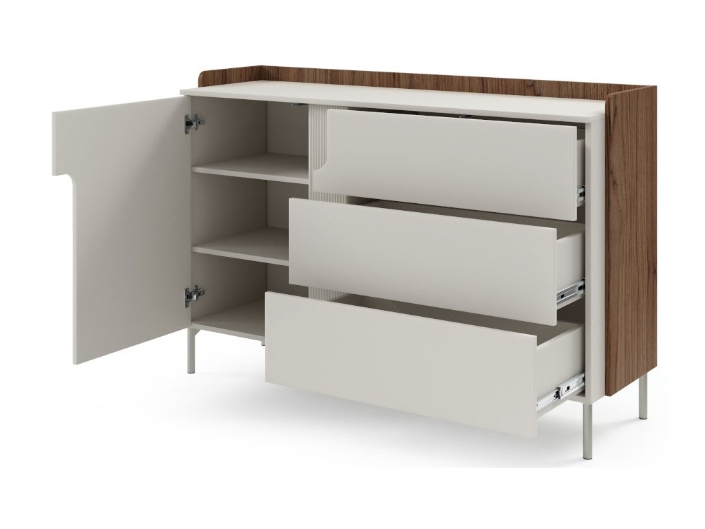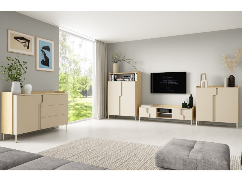 Moderní, elegantní a nadčasový sektor Positano. Předností nábytku jsou trendy vysoké nožky a zajímavě řešená drážkovaná vsadka na přední části. Tato kolekce rozjasní Váš interiér a Vy se tak budete cítit velmi příjemně a při odpočinku nebo relaxaci. Krásně se kombinuje s ostatními bytovými doplňky a díky různým dílům, které se dají kombinovat, vytvoříte útulný a bezpečný domov.