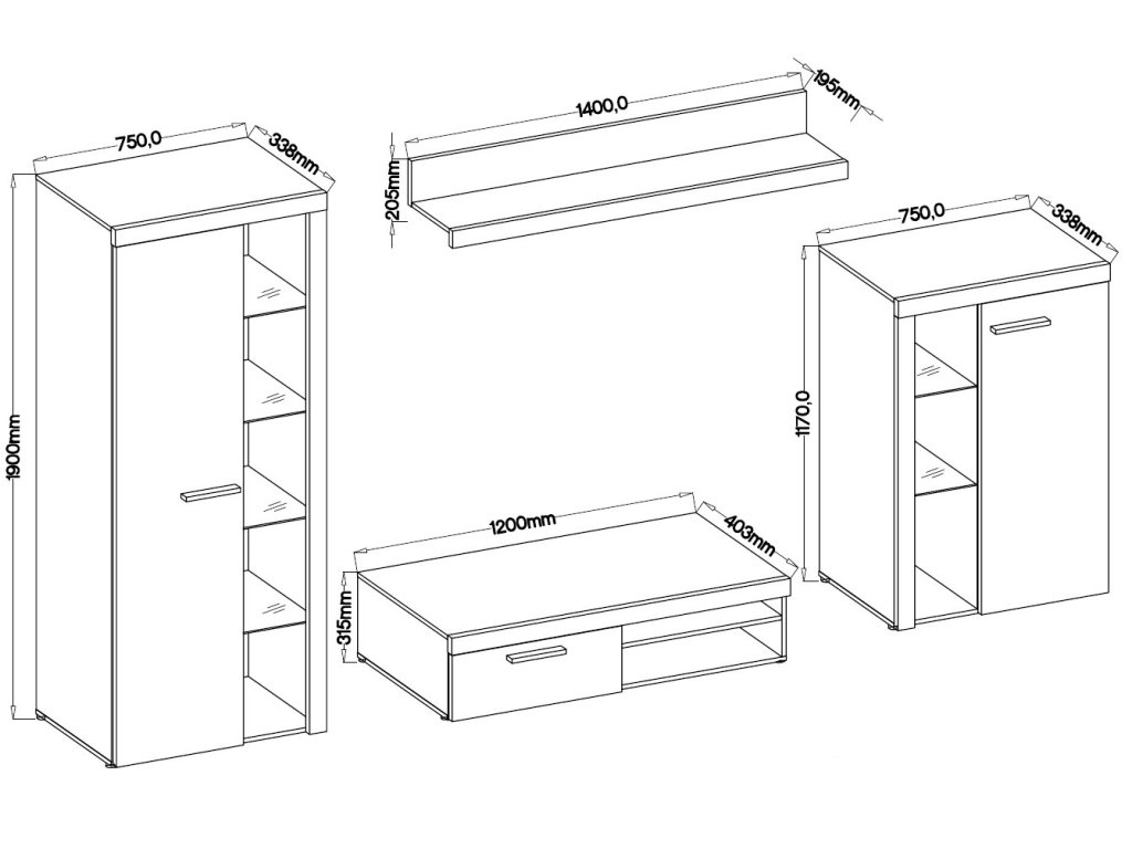 Obývací stěna Rizo patří mezi oblíbené modely moderního nábytku. Nabízí dostatek úložného prostoru a je vhodná i do menších pokojů. Stěna je vyrobena z lamina, které je odolné a snadné na údržbu. Ke stěně nabízíme i několik typů komod ve stejném provedení. Všechny prvky této sestavy jsou dodávány v demontu. Součástí je montážní plánek včetně všech potřebných spojovacích materiálů. Cena je uvedena za bytovou stěnu vyobrazenou na úvodní fotografii, bez komod, doplňků a dekorací. LED osvětlení není v ceně sestavy.