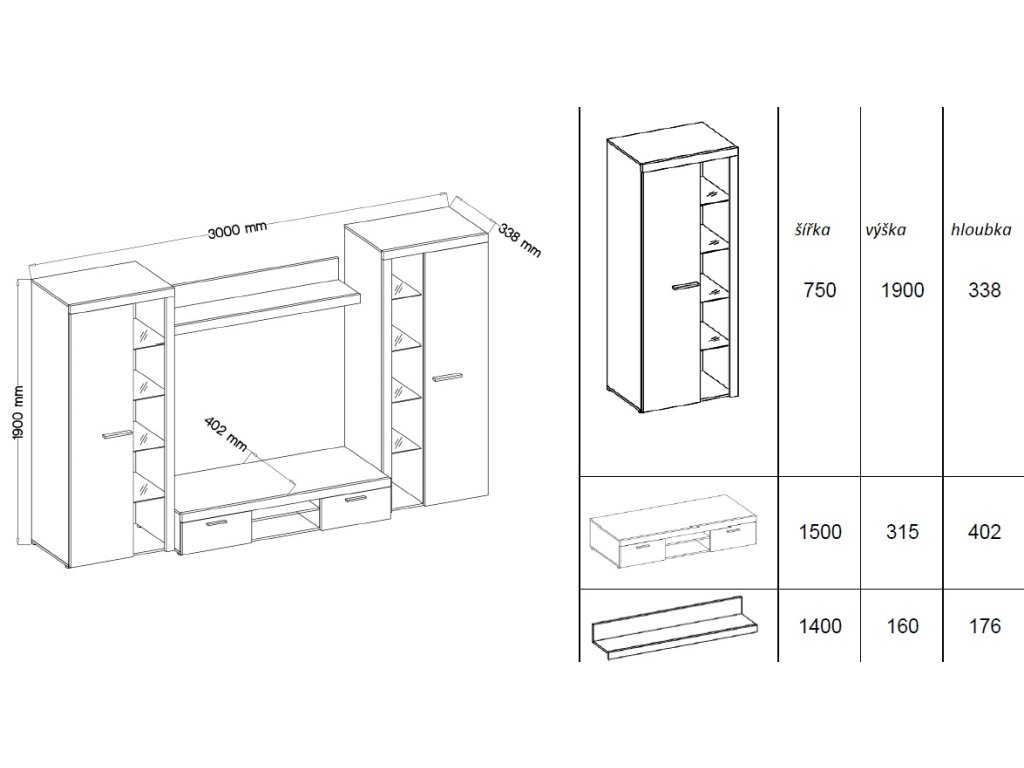 Obývací stěna Rizo patří mezi oblíbené modely moderního nábytku. Nabízí dostatek úložného prostoru a je vhodná i do menších pokojů. Stěna je vyrobena z lamina, které je odolné a snadné na údržbu. Ke stěně nabízíme i několik typů komod ve stejném provedení. Všechny prvky této sestavy jsou dodávány v demontu. Součástí je montážní plánek včetně všech potřebných spojovacích materiálů. Cena je uvedena za bytovou stěnu vyobrazenou na úvodní fotografii, bez komod, doplňků a dekorací. LED osvětlení není v ceně sestavy.