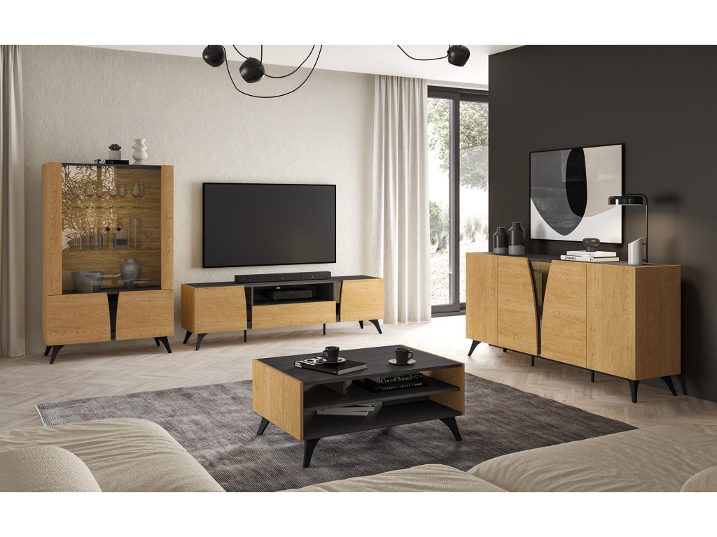 Toscania je elegantní nábytek, který zapadne do jakéhokoliv interiéru. Klasická kresba dřeva v kombinaci s černou lesklou vsadkou splňuje trendy moderního bydlení. Předností jsou tvarované vysoké nohy, které jsou velmi praktické a žádané. Tento nábytek se krásně sladí s ostatními bytovými doplňky a Vy se tak díky nabízeným dílům sestavíte pokoj přesně podle Vašich představ, kde se budete cítit dobře a bezpečně.