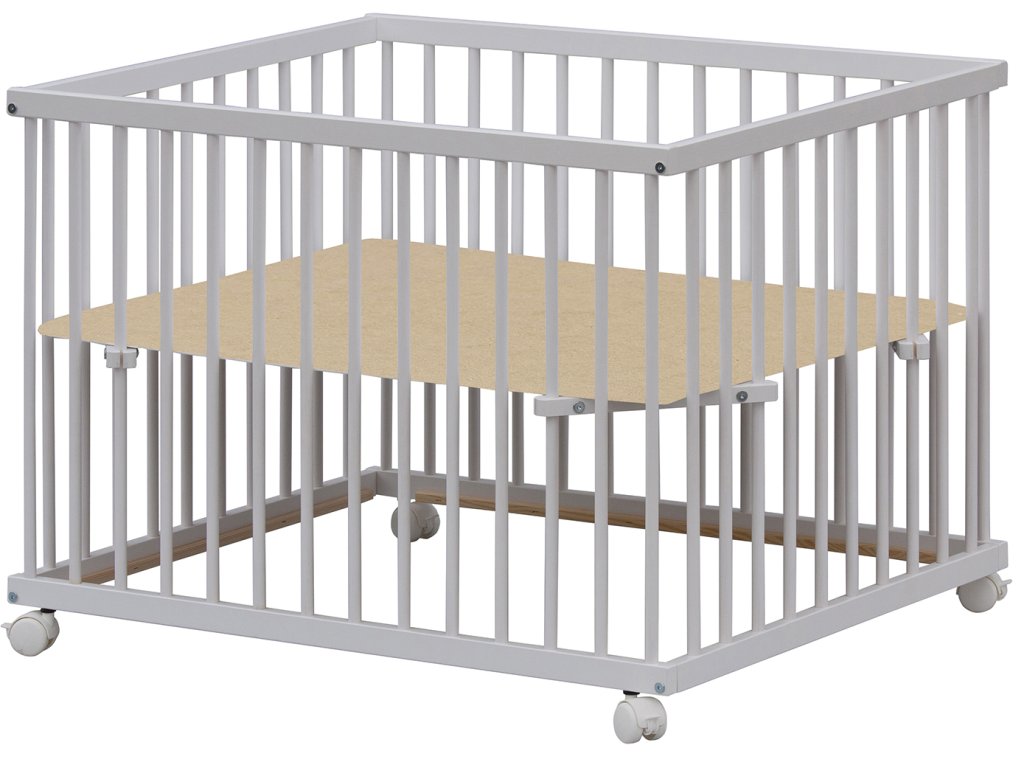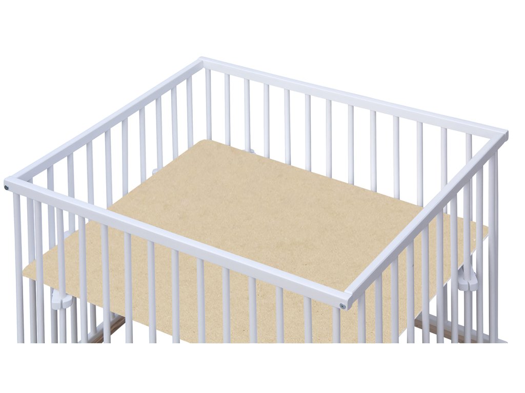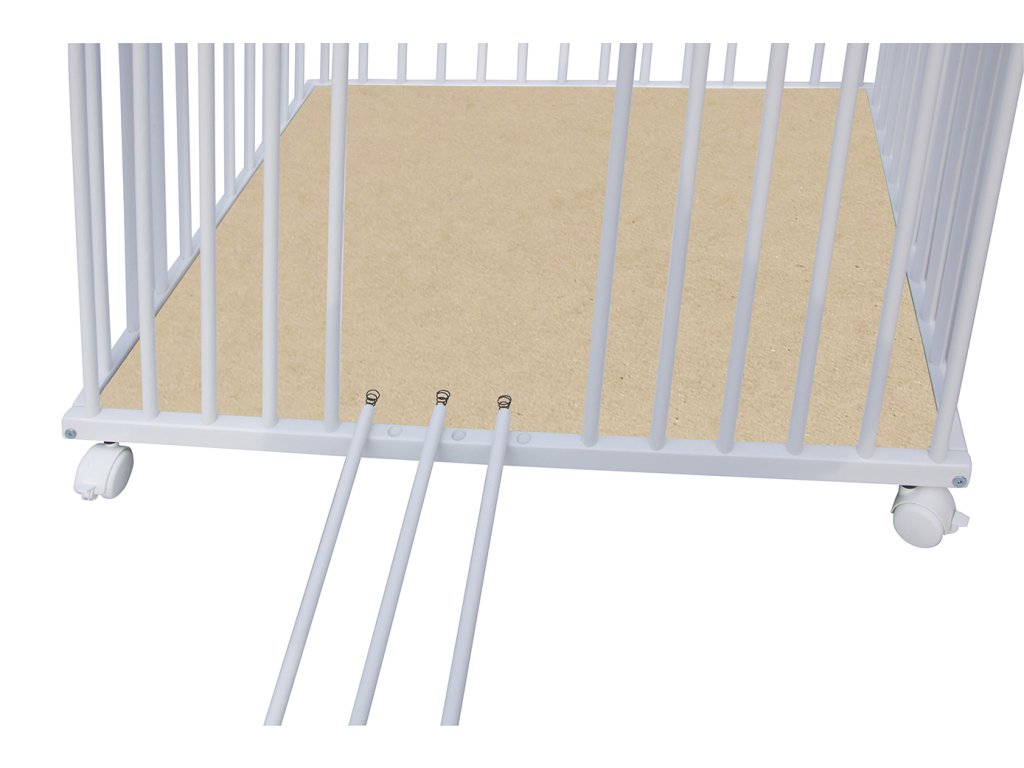 Dno je vyrobeno z MDF pro snazší údržbu. Otvory na kolečka jsou předvrtány, ale kolečka nejsou součástí ohrádky, lze si je doobjednat z naší nabídky. K ohrádce si můžete vybrat z nabídky hracích dek.