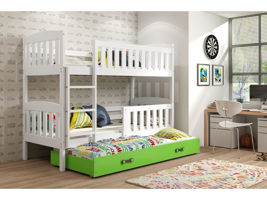 Patrová postel s přistýlkou Kuba bílá/zelená