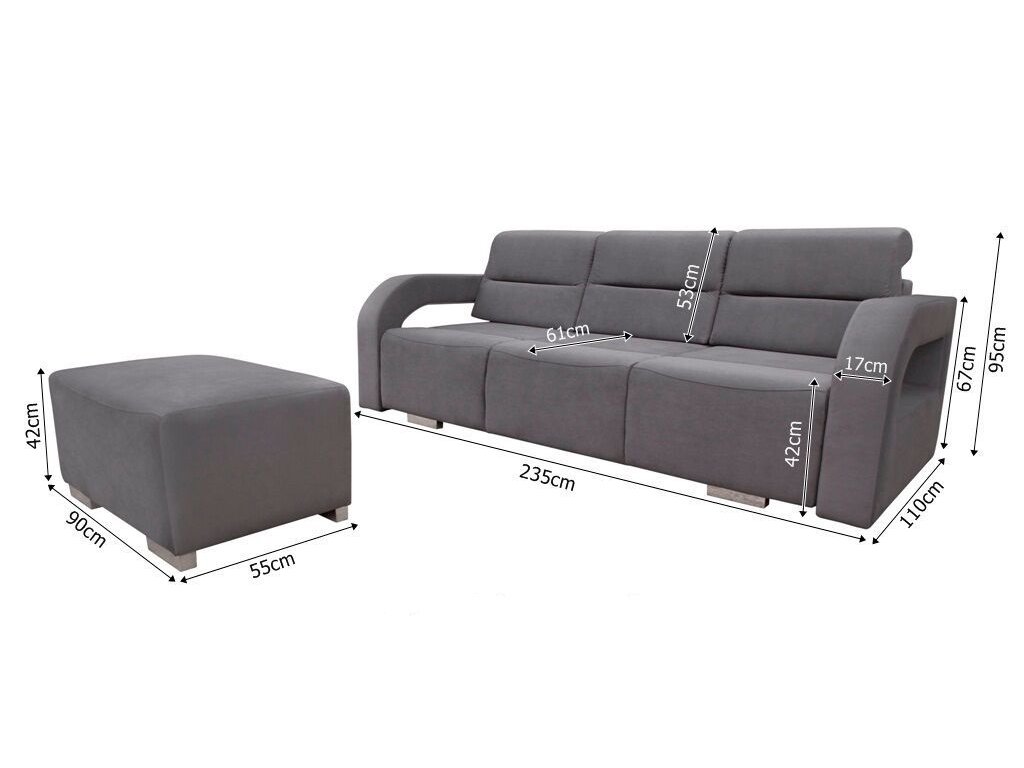 Pohovka Alza je rozkládací a součástí je i praktický úložný prostor a taburet. Zajímavé provedení područí, jí dodává lehkost a eleganci. Díky tomu nepůsobí mohutně a hodí se do každého interiéru. Výplň pohovky tvoří vlnité pružiny faliste v kombinaci s kvalitní PUR pěnou. Rozkládání je díky automatu jednoduché a po rozložení vznikne lůžko vhodné k příležitostnému přespání. Pohovku dodáváme v několika barevných provedeních, které také naleznete v naší nabídce. Rozpis rozměrů najdete na přiloženém obrázku s nákresem. V ceně pohovky je i vyobrazený taburet. Ostatní dekorace nejsou v ceně.