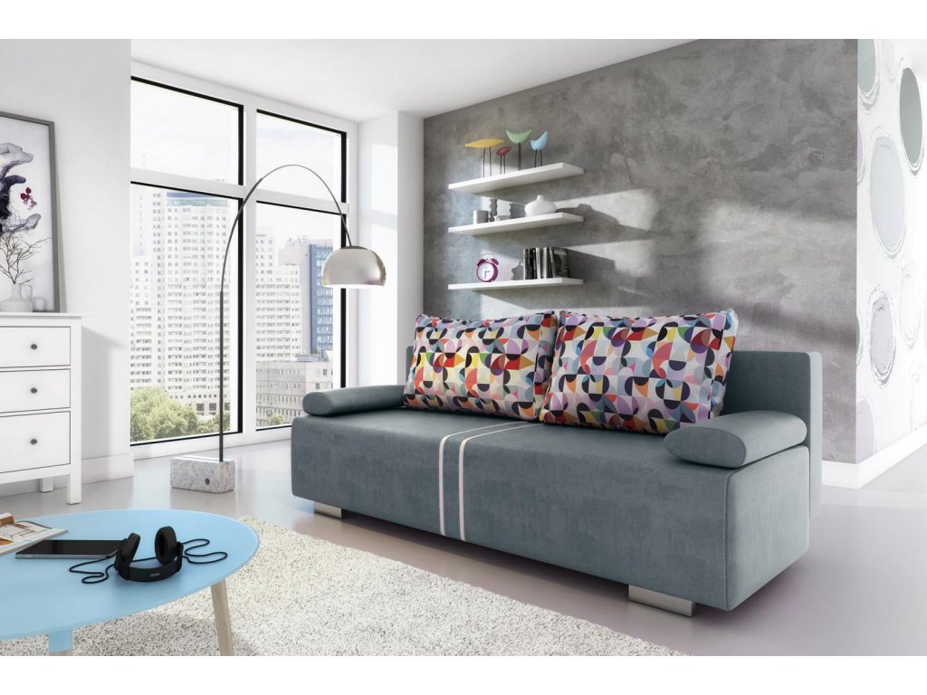 Moderní rozkládací pohovka s úložným prostorem. Výplň pohovky tvoří pružiny bonell v kombinaci s kvalitní PUR pěnou. Jednoduchým rozkladem pomocí automatu vznikne lůžko vhodné k příležitostnému spaní. Pohovku dodáváme v několika barevných provedeních, které také naleznete v naší nabídce.
