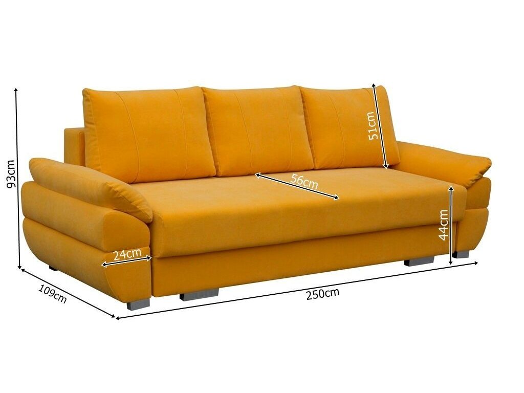Berenika je moderní pohovka se snadným rozkladem pomocí automatu a úložným prostorem. Pohodlné sezení Vám zajistí kombinace pružin faliste a bonell s kvalitní PUR pěnou. Jednoduchým rozkladem pomocí automatu vznikne lůžko vhodné k příležitostnému spaní. Pohovku nabízíme v kvalitní potahové látce, a to v několika barevných provedeních, které také naleznete v naší nabídce. Rozpis rozměrů najdete na přiloženém obrázku s nákresem. V ceně pohovky jsou 3 velké opěrné polštáře. Ostatní vyobrazené dekorace nejsou v ceně.