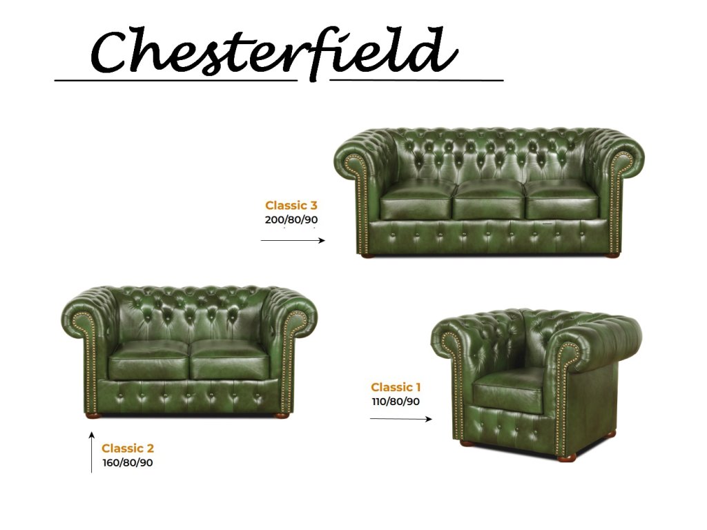 Objevte nadčasovou eleganci a prvotřídní pohodlí s koženými křesly a pohovkami Chesterfield. Každý detail od klasického hlubokého prošívání až po luxusní pravou hovězí kůži zaručuje jedinečný styl, který povýší váš domov či komerční prostor na novou úroveň. Vynikající řemeslné zpracování zaručuje nejen krásu, ale i dlouhou životnost. Pohovky Chesterfield jsou k dispozici v různých velikostech od křesel, dvoumístných a třímístných pohovek, až po prostorné čtyřmístné, rohové a atypické varianty.