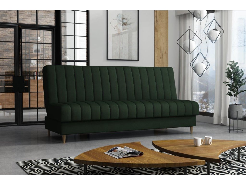 Pohovka Ejmy v sobě spojuje eleganci, funkčnost a příznivou cenu. Je vyrobená v jednoduchém nadčasovém designu, který se hodí do každého inferiéru. Umístit ji můžete nejen do obývacího pokoje, ale také např. do pracovny, nebo hostinského pokoje. Pohovka je rozkládací. Jednoduchým rozložením získáte lůžko k občasnému přespání Vaší návštěvy. Samozřejmostí je i praktický úložný prostor, který můžete využít třeba na lůžkoviny. Pohovku nabízíme v několika barevných provedeních. Vyobrazené doplňky a dekorace nejsou v ceně.