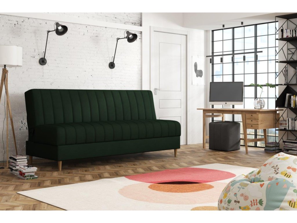 Pohovka Ejmy Mini v sobě spojuje eleganci, funkčnost a příznivou cenu. Je vyrobená v jednoduchém nadčasovém designu, který se hodí do každého inferiéru. Díky svým rozměrům se lehce vejde i do menší místnosti. Umístit ji můžete nejen do obývacího pokoje, ale také např. do pracovny, nebo hostinského pokoje. Pohovka je rozkládací. Jednoduchým rozložením získáte lůžko k občasnému přespání Vaší návštěvy. Samozřejmostí je i praktický úložný prostor, který můžete využít třeba na lůžkoviny. Pohovku nabízíme v několika barevných provedeních. Vyobrazené doplňky a dekorace nejsou v ceně.