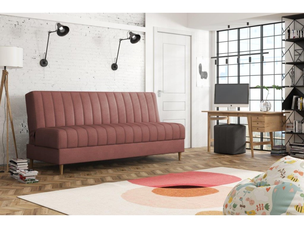 Pohovka Ejmy Mini v sobě spojuje eleganci, funkčnost a příznivou cenu. Je vyrobená v jednoduchém nadčasovém designu, který se hodí do každého inferiéru. Díky svým rozměrům se lehce vejde i do menší místnosti. Umístit ji můžete nejen do obývacího pokoje, ale také např. do pracovny, nebo hostinského pokoje. Pohovka je rozkládací. Jednoduchým rozložením získáte lůžko k občasnému přespání Vaší návštěvy. Samozřejmostí je i praktický úložný prostor, který můžete využít třeba na lůžkoviny. Pohovku nabízíme v několika barevných provedeních. Vyobrazené doplňky a dekorace nejsou v ceně.