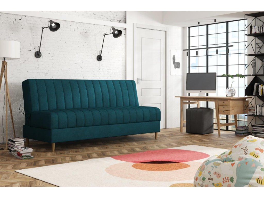 Pohovka Ejmy Mini v sobě spojuje eleganci, funkčnost a příznivou cenu. Je vyrobená v jednoduchém nadčasovém designu, který se hodí do každého inferiéru. Díky svým rozměrům se lehce vejde i do menší místnosti. Umístit ji můžete nejen do obývacího pokoje, ale také např. do pracovny, nebo hostinského pokoje. Pohovka je rozkládací. Jednoduchým rozložením získáte lůžko k občasnému přespání Vaší návštěvy. Samozřejmostí je i praktický úložný prostor, který můžete využít třeba na lůžkoviny. Pohovku nabízíme v několika barevných provedeních. Vyobrazené doplňky a dekorace nejsou v ceně.