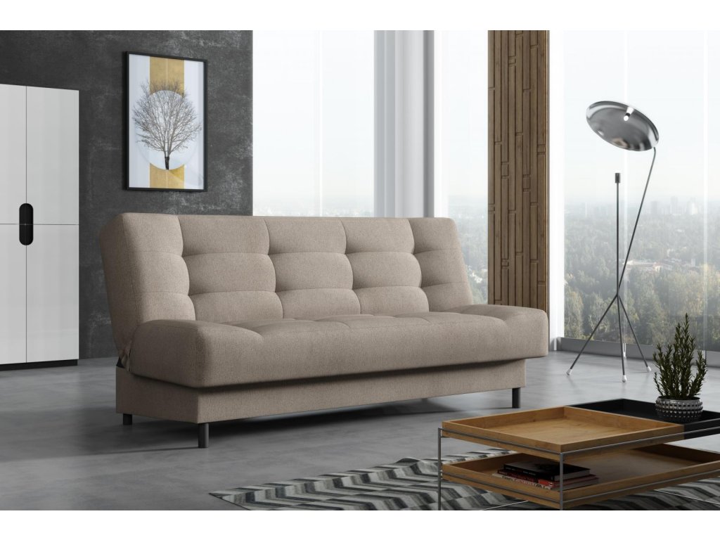 Pohovka Living je příjemným spojením elegance, funkčnosti a příznivé ceny. Je vyrobená v jednoduchém nadčasovém designu, který se hodí do každého inferiéru. Umístit ji můžete do obývacího pokoje, ale je také vhodná např. do studentského pokoje, pracovny, nebo hostinského pokoje. Pohovka je rozkládací. Jednoduchým rozložením získáte lůžko k občasnému přespání Vaší návštěvy. Samozřejmostí je i praktický úložný prostor, který můžete využít třeba na lůžkoviny. Pohovku nabízíme v několika barevných provedeních. Vyobrazené doplňky a dekorace nejsou v ceně.