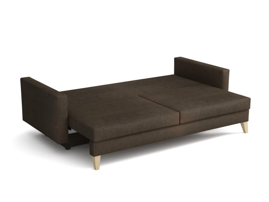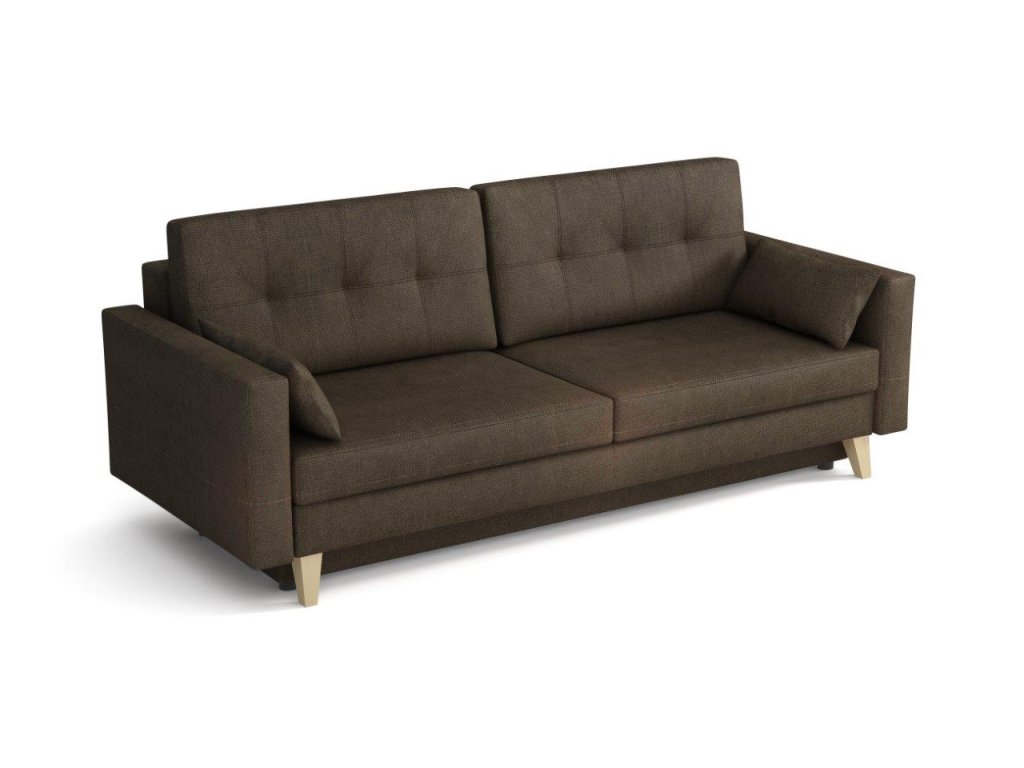 Pohovka Marina je krásným elegantním kouskem s nádechem RETRO designu a výborně zapadne do každého interiéru. Retro design podtrhují zešikmené dřevěné nohy a látkové knoflíky na opěrce. Pohovka je rozkládací a samozřejmostí je i nepostradatelný úložný prostor. Jednoduchým rozložením pomocí automatu vznikne dostatečně prostorné lůžko občasnému přespání Vaší návštěvy. Výpň sedáku tvoří vlnité pružiny v kombinaci s pružinami bonell a kvalitní PUR pěnou. Pohovka je celočalouněná, takže ji můžete umístit i do prostoru. Výborně se hodí do obývacího pokoje, do pracovny či pokoje pro hosty. Pohovku nabízíme v několika trendy barvách. Vyobrazené dopňky a dekorace nejsou v ceně.