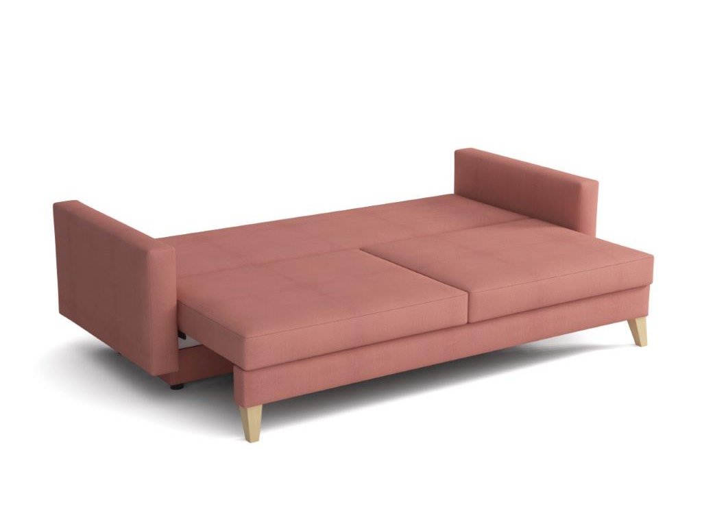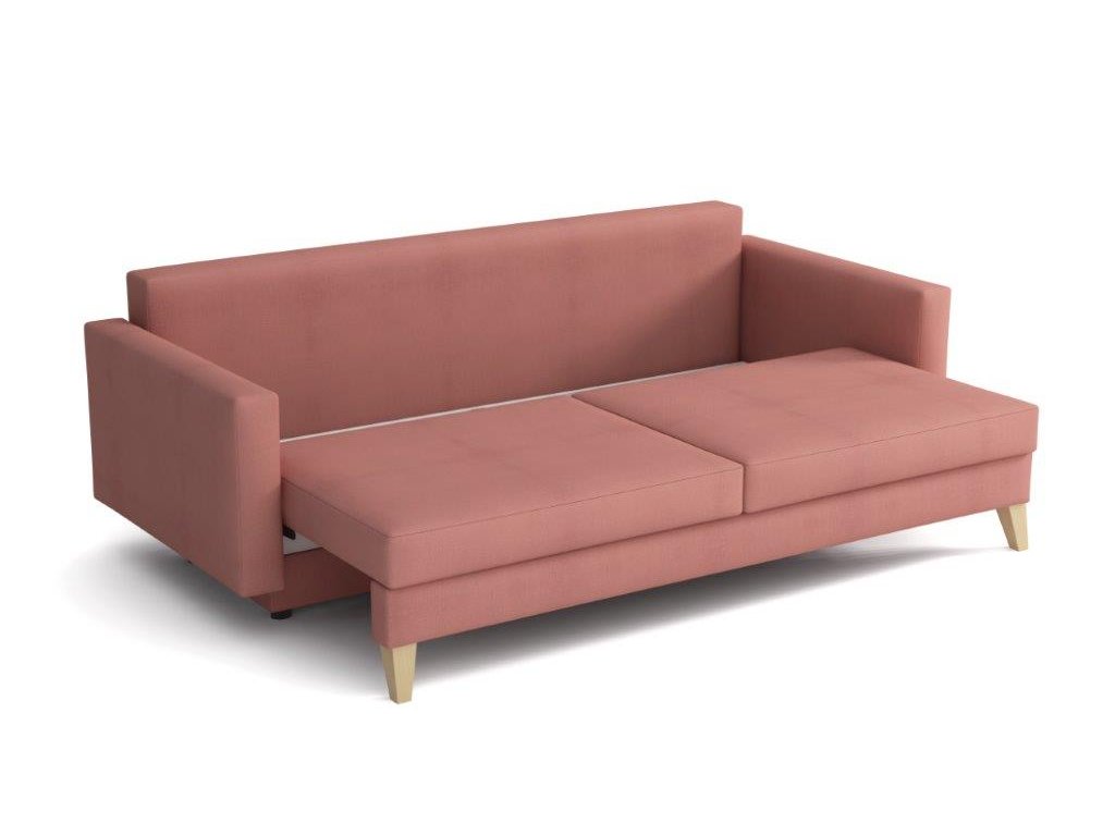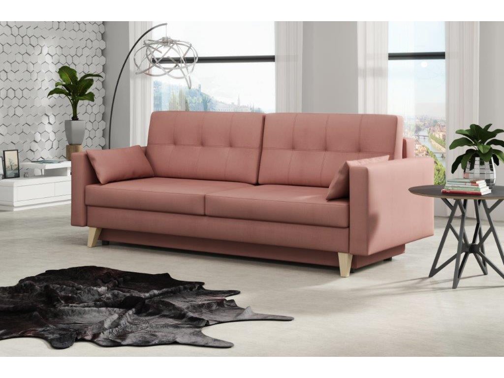 Pohovka Marina je krásným elegantním kouskem s nádechem RETRO designu a výborně zapadne do každého interiéru. Retro design podtrhují zešikmené dřevěné nohy a látkové knoflíky na opěrce. Pohovka je rozkládací a samozřejmostí je i nepostradatelný úložný prostor. Jednoduchým rozložením pomocí automatu vznikne dostatečně prostorné lůžko občasnému přespání Vaší návštěvy. Výpň sedáku tvoří vlnité pružiny v kombinaci s pružinami bonell a kvalitní PUR pěnou. Pohovka je celočalouněná, takže ji můžete umístit i do prostoru. Výborně se hodí do obývacího pokoje, do pracovny či pokoje pro hosty. Pohovku nabízíme v několika trendy barvách. Vyobrazené dopňky a dekorace nejsou v ceně.