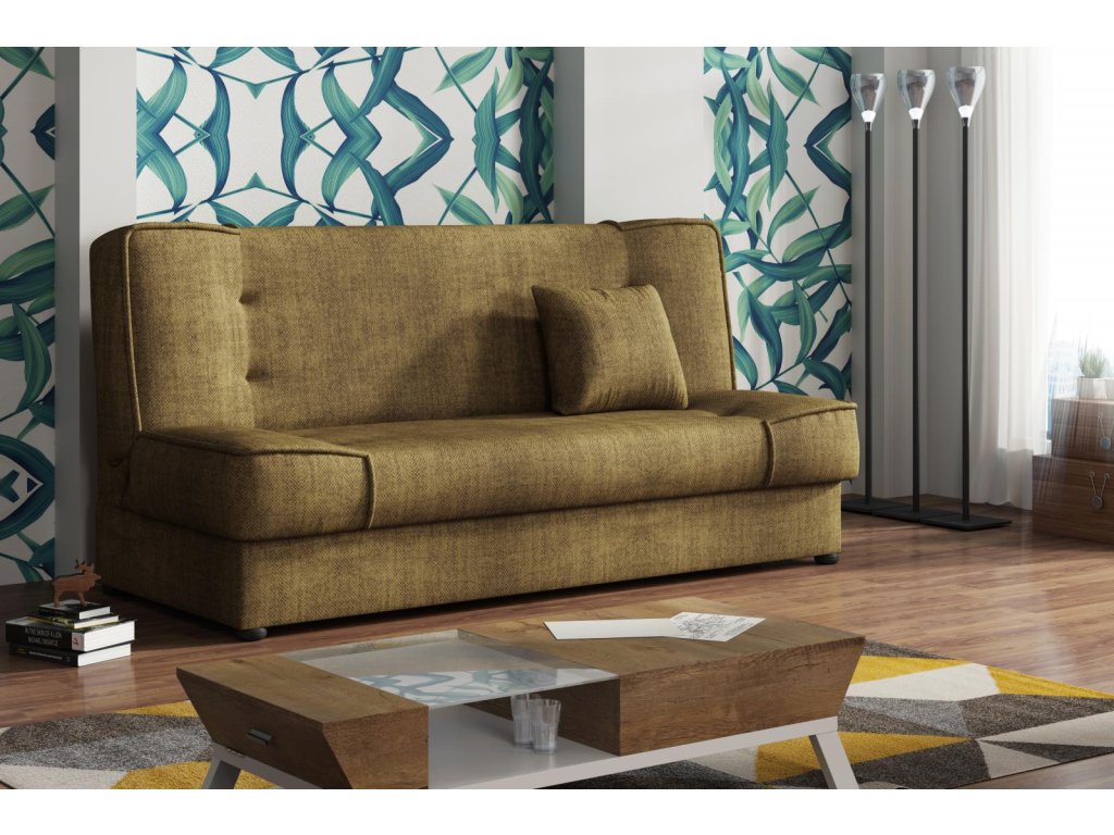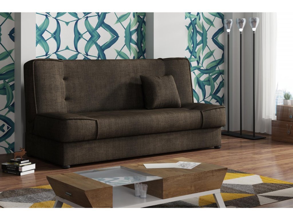 Pohovka Rallye je vyrobená v jednoduchém a nadčasovém designu. Hodí se do moderního i klasického interiéru a je vhodná i do malých pokojů. Pohovka je rozkládací a má i praktický úlořný prostor. Výplň sedáku tvoří kombinace pružin s kvalitní PUR pěnou. Jednoduchým rozložením pomocí systému klik-klak, vznikne lůžko k občasnému přespání Vaší návštěvy. Pohovku nabízíme v několika trendy barvách a v ceně je malý dekorační polštářek. Ostatní vyobrazené dekorace nejsou v ceně.