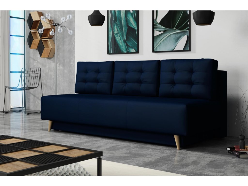Pohovka Sebastian je elegantním kouskem sedacího nábytku s nádechem RETRO designu a výborně zapadne do každého interiéru. Retro design podtrhují zešikmené dřevěné nohy a látkové knoflíky na opěrných polštářích. Pohovka je rozkládací a samozřejmostí je i nepostradatelný úložný prostor. Jednoduchým rozložením pomocí automatu vznikne dostatečně prostorné lůžko občasnému přespání Vaší návštěvy. Výplň sedáku tvoří pružiny bonell a kvalitní PUR pěna. Pohovka je celočalouněná, takže ji můžete umístit i do prostoru. Výborně se hodí do obývacího pokoje, do pracovny či pokoje pro hosty. Pohovku nabízíme v několika trendy barvách. Vyobrazené doplňky a dekorace nejsou v ceně.