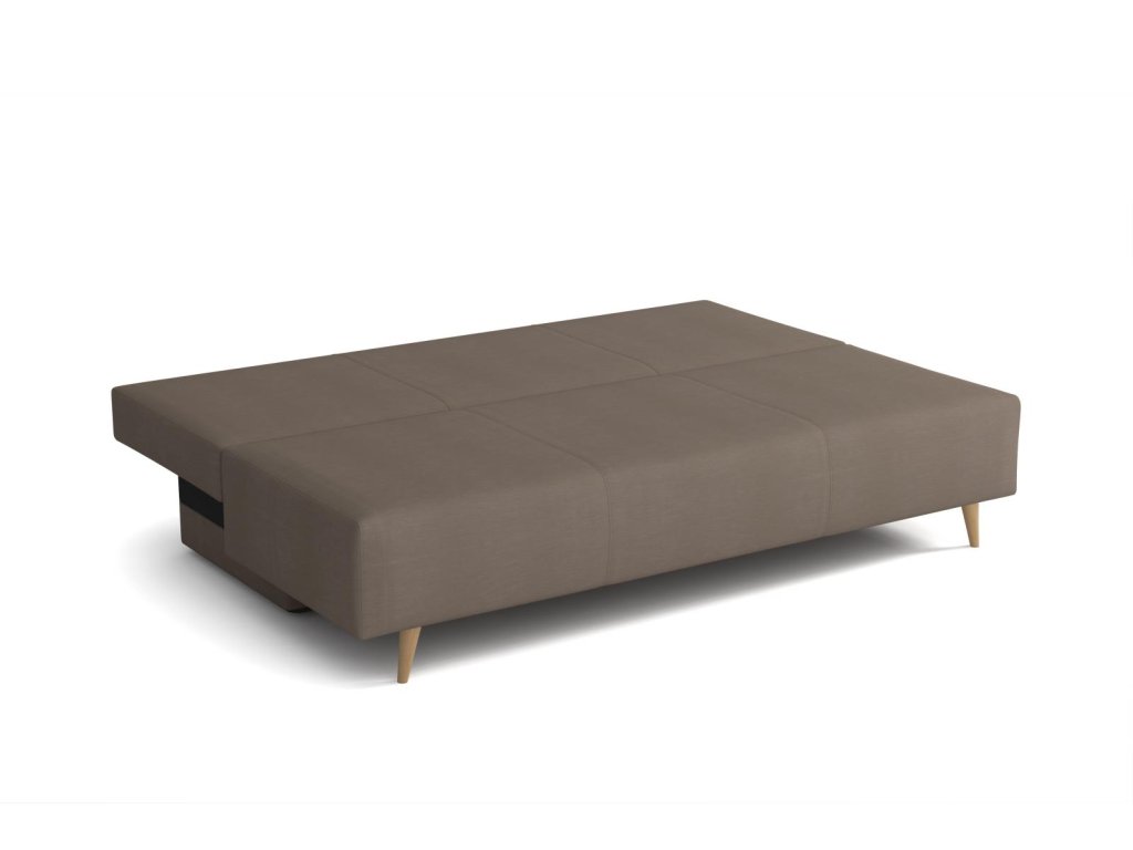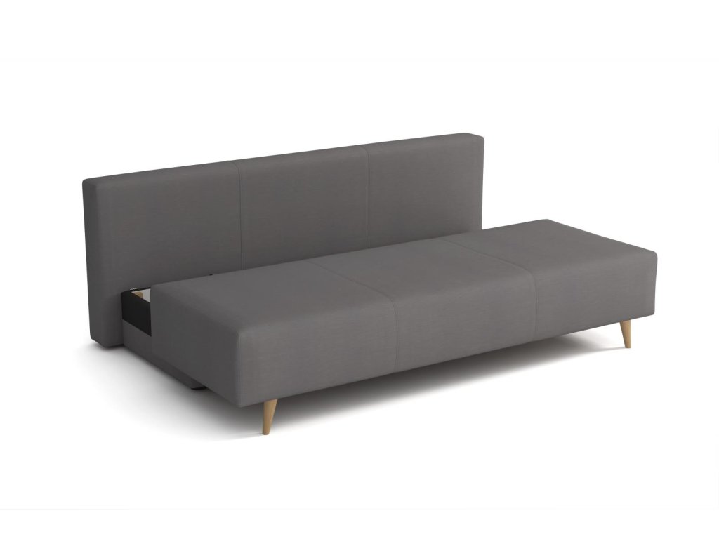 Pohovka Sebastian je elegantním kouskem sedacího nábytku s nádechem RETRO designu a výborně zapadne do každého interiéru. Retro design podtrhují zešikmené dřevěné nohy a látkové knoflíky na opěrných polštářích. Pohovka je rozkládací a samozřejmostí je i nepostradatelný úložný prostor. Jednoduchým rozložením pomocí automatu vznikne dostatečně prostorné lůžko občasnému přespání Vaší návštěvy. Výplň sedáku tvoří pružiny bonell a kvalitní PUR pěna. Pohovka je celočalouněná, takže ji můžete umístit i do prostoru. Výborně se hodí do obývacího pokoje, do pracovny či pokoje pro hosty. Pohovku nabízíme v několika trendy barvách. Vyobrazené doplňky a dekorace nejsou v ceně.