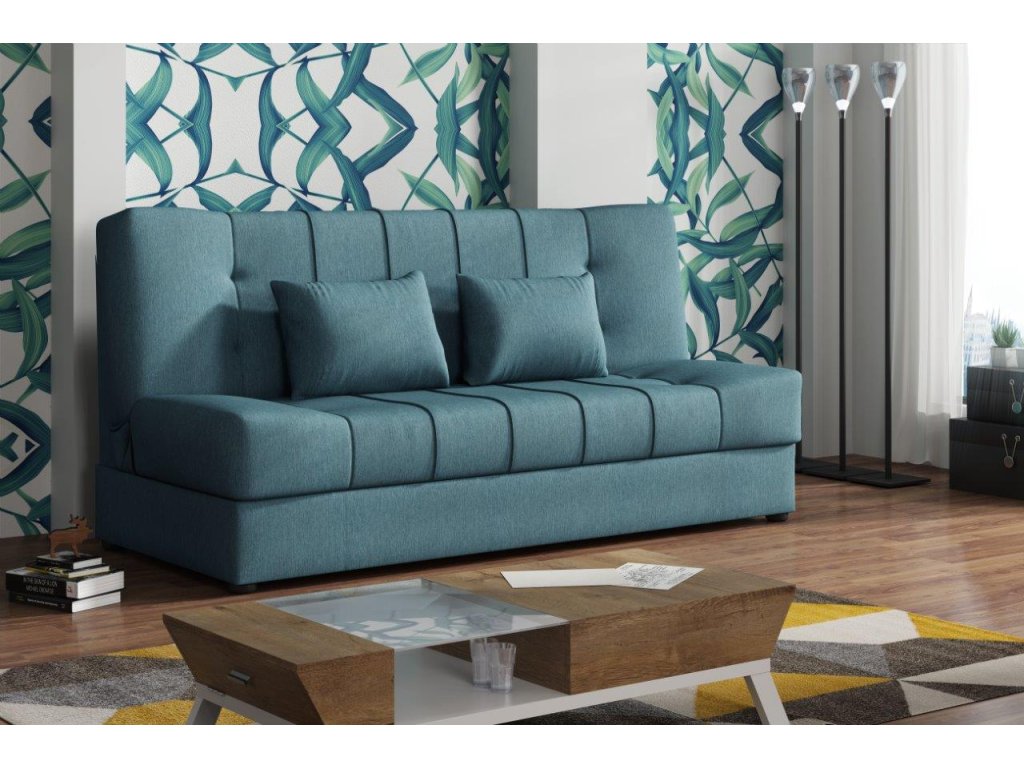 Pohovka Sun je příjemným spojením elegance, funkčnosti a atraktivní ceny. Skvěle doplní design Vašeho obývacího pokoje, ale je také vhodná např. do studentského pokoje, pracovny, nebo hostinského pokoje. Pohovka je rozkládací. Jednoduchým rozložením pomocí systému klik klak, získáte lůžko k občasnému přespání Vaší návštěvy. Samozřejmostí je i praktický úložný prostor, který můžete využít třeba na lůžkoviny. Pohovku nabízíme v několika trendy barevných provedeních. V ceně pohovky jsou 2 dekorační polštářky. Ostatní vyobrazené doplňky a dekorace nejsou v ceně. Úvodní fotografie je ilustrační. Pohovka bude dodaná v potahové látce, která je vyobrazená na vzorku v doplňkových fotografiích.