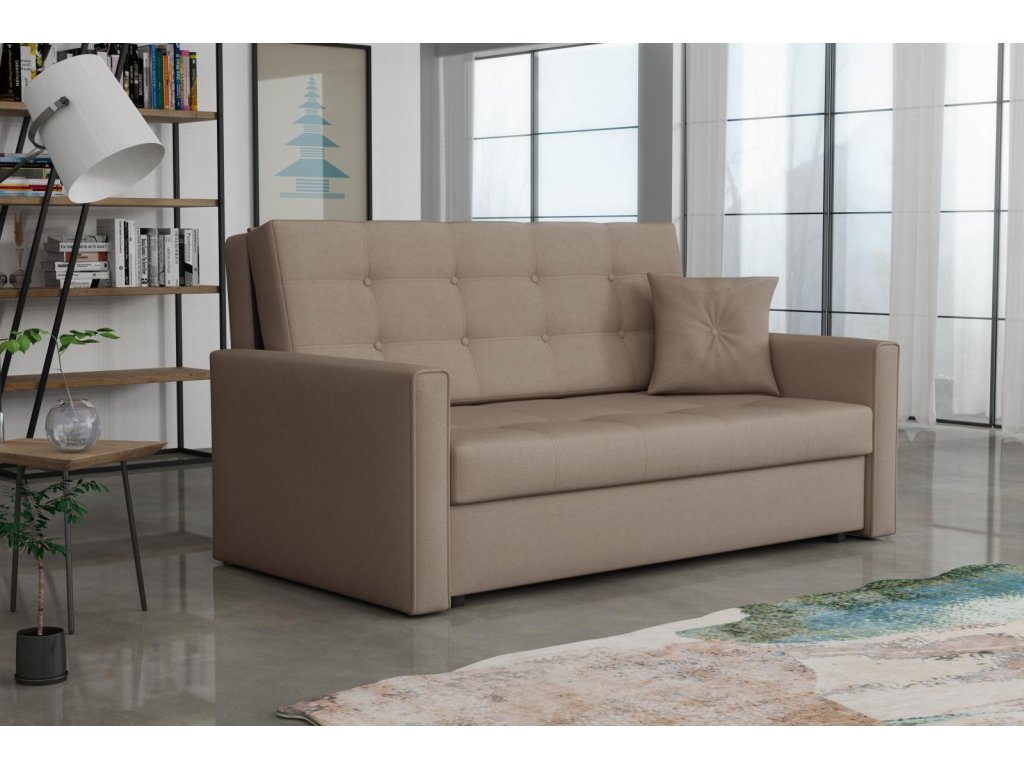 Rozkládací pohovka Vivian je díky svým rozměrům vhodná i do menších pokojů. Je vyrobena v jednoduchém a zároveň elegantním designu, který se hodí do všech interiérů. Můžete ji umístit do obývacího, dětského, studentského, nebo hostinského pokoje. Jednoduchým rozložením pomocí automatu, získáte lůžko k příležitostnému přespání Vaší návštěvy. Výplň sedáku tvoří vlnité pružiny v kombinaci s PUR pěnou. Pohovka je potažena kvalitní látkou a nabízíme ji v několika trendy odstínech. Pohovka disponuje i nepostradatelným úložným prostorem, který využijete např. na deku a polštář. V ceně pohovky je 1 dekorační polštář. Ostatní vyobrazené dekorace nejsou v ceně.