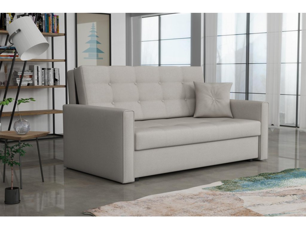 Rozkládací pohovka Vivian je díky svým rozměrům vhodná i do menších pokojů. Je vyrobena v jednoduchém a zároveň elegantním designu, který se hodí do všech interiérů. Můžete ji umístit do obývacího, dětského, studentského, nebo hostinského pokoje. Jednoduchým rozložením pomocí automatu, získáte lůžko k příležitostnému přespání Vaší návštěvy. Výplň sedáku tvoří vlnité pružiny v kombinaci s PUR pěnou. Pohovka je potažena kvalitní látkou a nabízíme ji v několika trendy odstínech. Pohovka disponuje i nepostradatelným úložným prostorem, který využijete např. na deku a polštář. V ceně pohovky je 1 dekorační polštář. Ostatní vyobrazené dekorace nejsou v ceně.