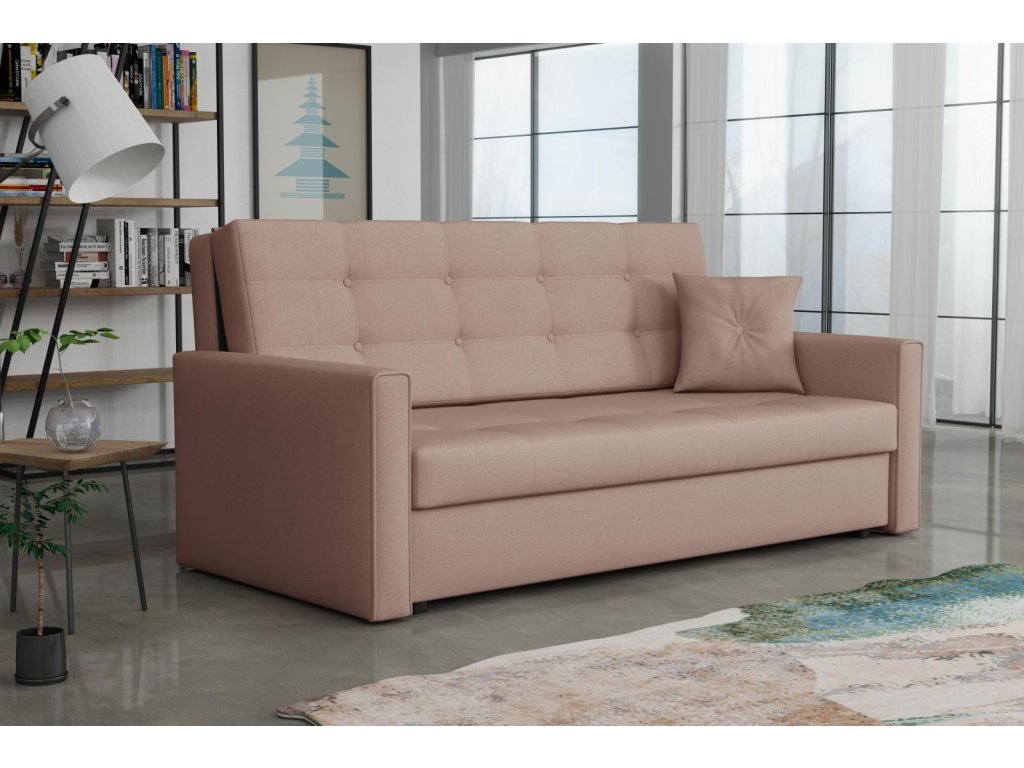 Rozkládací pohovka Vivian je díky svým rozměrům vhodná i do menších pokojů. Je vyrobena v jednoduchém a zároveň elegantním designu, který se hodí do všech interiérů. Můžete ji umístit do obývacího, dětského, studentského, nebo hostinského pokoje. Jednoduchým rozložením pomocí automatu, získáte lůžko k příležitostnému přespání Vaší návštěvy. Výplň sedáku tvoří vlnité pružiny v kombinaci s PUR pěnou. Pohovka je potažena kvalitní látkou a nabízíme ji v několika trendy odstínech. Pohovka disponuje i nepostradatelným úložným prostorem, který využijete např. na deku a polštář. V ceně pohovky je 1 dekorační polštář. Ostatní vyobrazené dekorace nejsou v ceně.