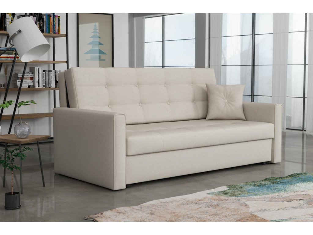Rozkládací pohovka Vivian je díky svým rozměrům vhodná i do menších pokojů. Je vyrobena v jednoduchém a zároveň elegantním designu, který se hodí do všech interiérů. Můžete ji umístit do obývacího, dětského, studentského, nebo hostinského pokoje. Jednoduchým rozložením pomocí automatu, získáte lůžko k příležitostnému přespání Vaší návštěvy. Výplň sedáku tvoří vlnité pružiny v kombinaci s PUR pěnou. Pohovka je potažena kvalitní látkou a nabízíme ji v několika trendy odstínech. Pohovka disponuje i nepostradatelným úložným prostorem, který využijete např. na deku a polštář. V ceně pohovky je 1 dekorační polštář. Ostatní vyobrazené dekorace nejsou v ceně.