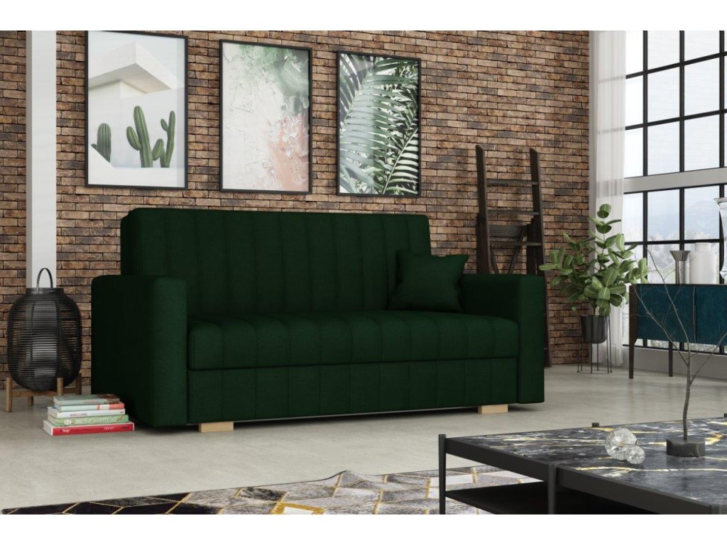 Rozkládací pohovka Vivian je díky svým rozměrům vhodná i do menších pokojů. Své uplatnění najde nejen v obývacím pokoji, ale také v dětském, studentském, nebo hostinském pokoji. Jednoduchým rozložením pomocí automatu, získáte lůžko k příležitostnému přespání Vaší návštěvy. Výplň sedáku tvoří vlnité pružiny v kombinaci s PUR pěnou. Pohovka je potažena kvalitní látkou a nabízíme ji v několika trendy odstínech. Pohovka disponuje i nepostradatelným úložným prostorem, který využijete např. na deku a polštář. V ceně pohovky je 1 dekorační polštář. Ostatní vyobrazené dekorace nejsou v ceně.