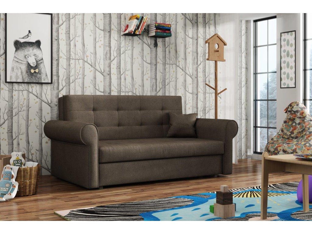Rozkládací pohovka Vivian je díky svým rozměrům vhodná i do menších pokojů. Své uplatnění najde nejen v obývacím pokoji, ale také v dětském, studentském, nebo hostinském pokoji. Jednoduchým rozložením pomocí automatu, získáte lůžko k příležitostnému přespání Vaší návštěvy. Výplň sedáku tvoří vlnité pružiny v kombinaci s PUR pěnou. Pohovka je potažena kvalitní látkou a nabízíme ji v několika trendy odstínech. Pohovka disponuje i nepostradatelným úložným prostorem, který využijete např. na deku a polštář. V ceně pohovky je 1 dekorační polštář. Ostatní vyobrazené dekorace nejsou v ceně.