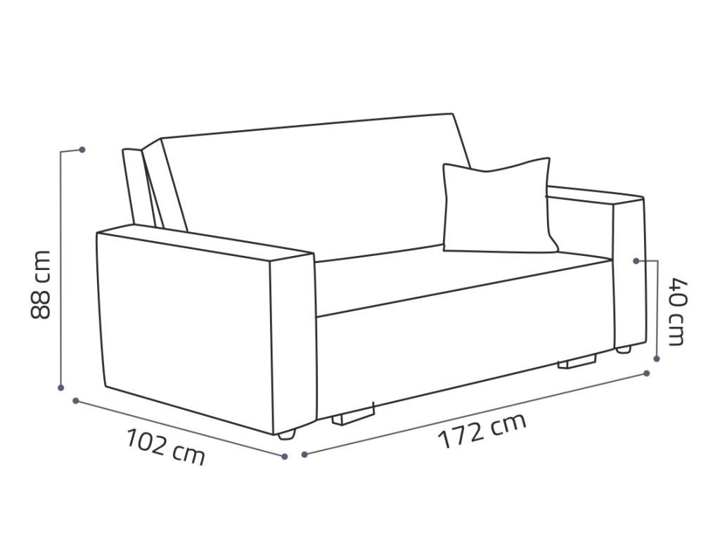 Pohovka je vhodná do dětského, studentského, nebo hostinského pokoje. Jednoduchým rozložením pomocí automatu, získáte lůžko k příležitostnému přespání Vaší návštěvy, nebo kamaráda Vašich dětí. Výplň sedáku tvoří vlnité pružiny v kombinaci s PUR pěnou. Pohovka je potažena kvalitní látkou s výběrem několika trendy odstínů. Pohovka disponuje i nepostradatelným úložným prostorem, který využijete např. na deku a polštář. Ostatní vyobrazené doplňky a dekorace nejsou v ceně.