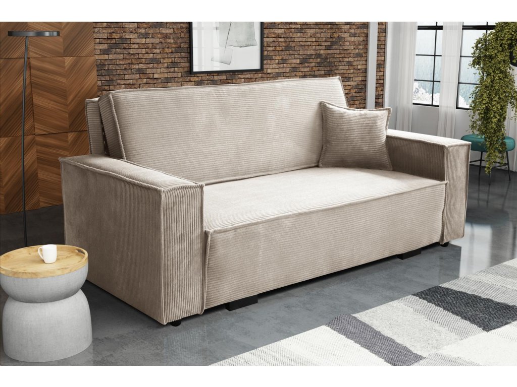 Pohovka je vhodná do dětského, studentského, nebo hostinského pokoje. Jednoduchým rozložením pomocí automatu, získáte lůžko k příležitostnému přespání Vaší návštěvy, nebo kamaráda Vašich dětí. Výplň sedáku tvoří vlnité pružiny v kombinaci s PUR pěnou. Pohovka je potažena kvalitní látkou s výběrem několika trendy odstínů. Pohovka disponuje i nepostradatelným úložným prostorem, který využijete např. na deku a polštář. Ostatní vyobrazené doplňky a dekorace nejsou v ceně.