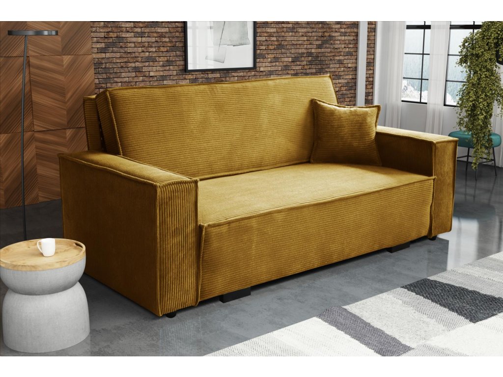 Pohovka je vhodná do dětského, studentského, nebo hostinského pokoje. Jednoduchým rozložením pomocí automatu, získáte lůžko k příležitostnému přespání Vaší návštěvy, nebo kamaráda Vašich dětí. Výplň sedáku tvoří vlnité pružiny v kombinaci s PUR pěnou. Pohovka je potažena kvalitní látkou s výběrem několika trendy odstínů. Pohovka disponuje i nepostradatelným úložným prostorem, který využijete např. na deku a polštář. Ostatní vyobrazené doplňky a dekorace nejsou v ceně.