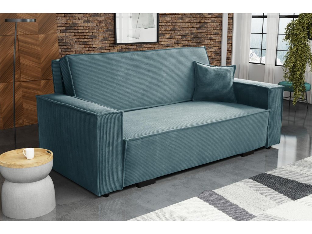 Pohovka je vhodná do dětského, studentského, nebo hostinského pokoje. Jednoduchým rozložením pomocí automatu, získáte lůžko k příležitostnému přespání Vaší návštěvy, nebo kamaráda Vašich dětí. Výplň sedáku tvoří vlnité pružiny v kombinaci s PUR pěnou. Pohovka je potažena kvalitní látkou s výběrem několika trendy odstínů. Pohovka disponuje i nepostradatelným úložným prostorem, který využijete např. na deku a polštář. Ostatní vyobrazené doplňky a dekorace nejsou v ceně.