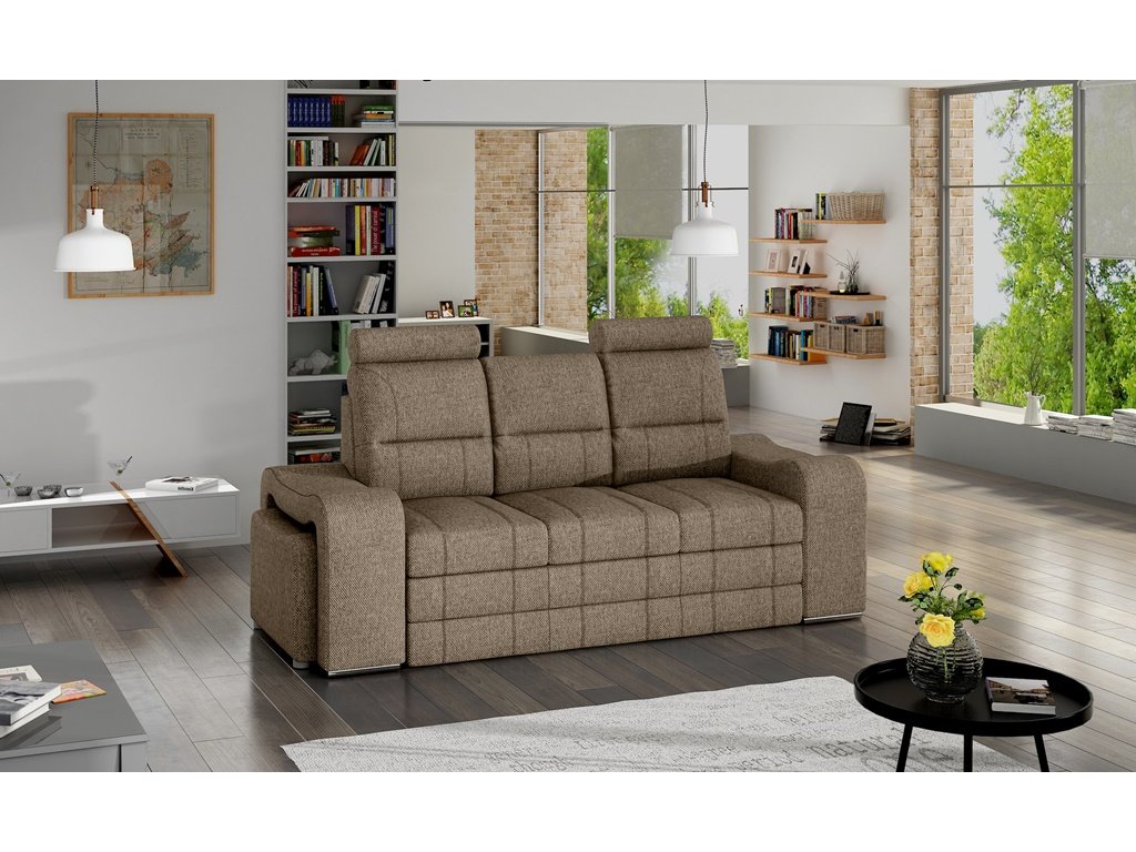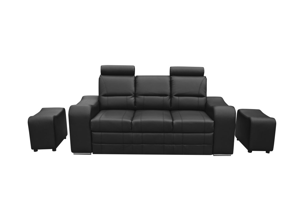 Pohovka Wenezie je určena pro ty, kteří mají rádi komfort a originalitu. Kombinace pružin faliste s kvalitní PUR pěnou, zajišťují velmi pohodlné sezení. Pohovka je rozkládací s úložným prostorem. Pohovku nabízíme v Eko kůži nebo látce, a to v několika barevných provedeních, které také naleznete v naší nabídce. V ceně pohovky jsou 2 taburety, které se dají ukrýt v područích pohovky a dvě výškově nastavitelné opěrky hlavy. Ostatní vyobrazené dekorace nejsou v ceně.