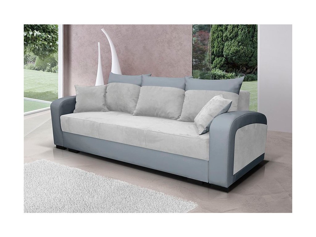 Pohovka Zara vyniká elegancí a pohodlím. Originální vzhled dodává kombinace barev a materiálů. Pohovka je potažena velmi příjemnou látkou v kombinaci s EKO kůží. Pohovka je rozkládací a samozřejmostí je i praktický úložný prostor na lůžkoviny. Výplň sedáku tvoří kombinace pružin bonell s kvalitní PUR pěnou. Jednoduchým rozložením vznikne dostatečně velké lůžko k občasnému přespání. V ceně pohovky jsou tři velké opěrné polštáře a dva melé dekorační polštářky. Ostatní vyobrazené dekorace nejsou v ceně.
